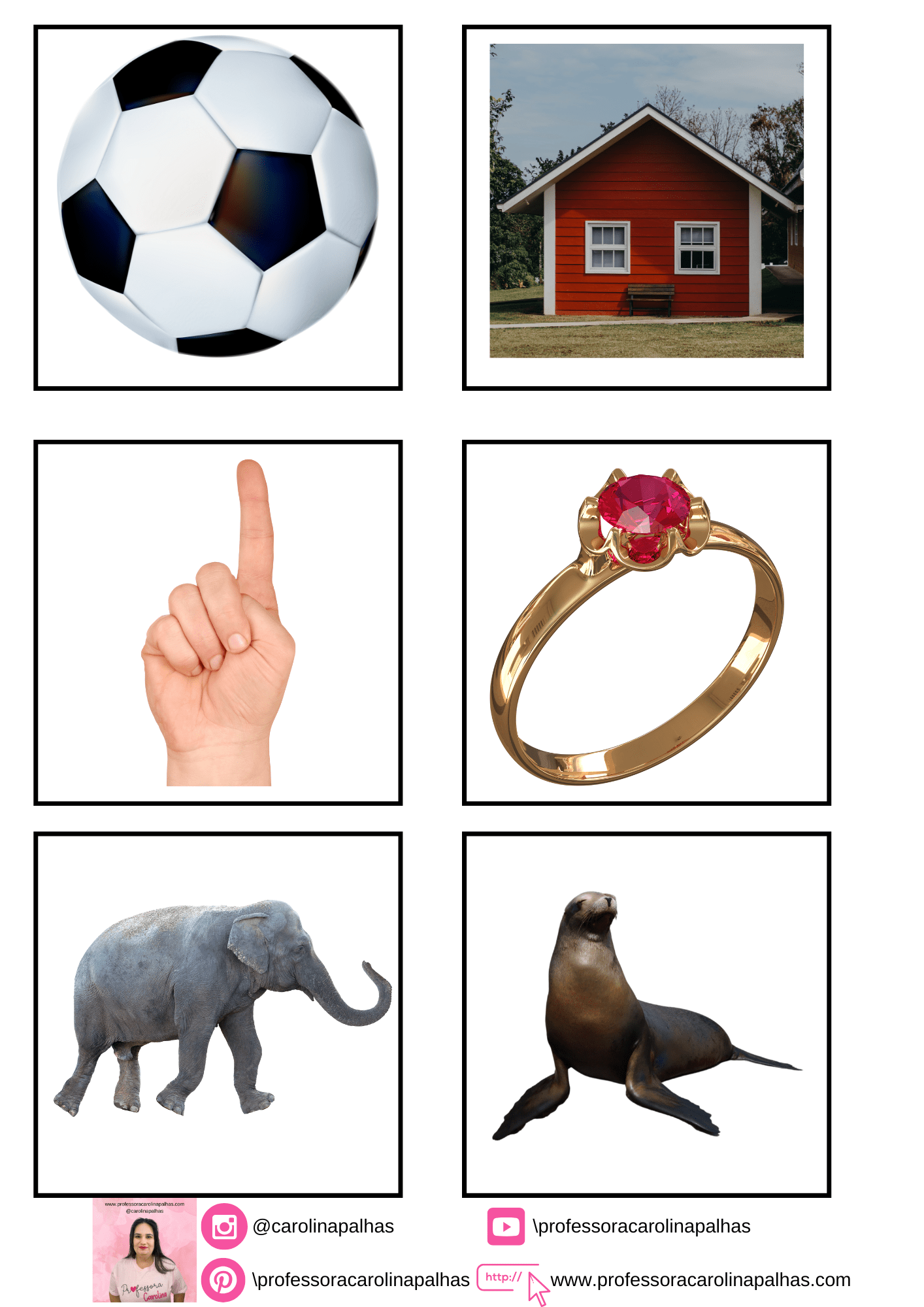 • Atividade: Apresente figuras reais relacionadas à palavra e estimule as crianças a nomeá-las.