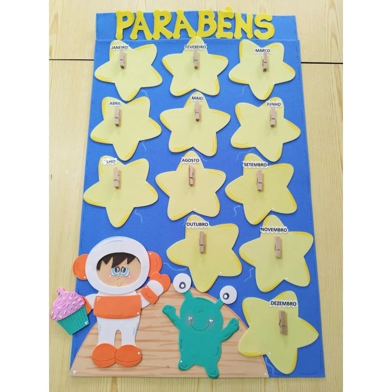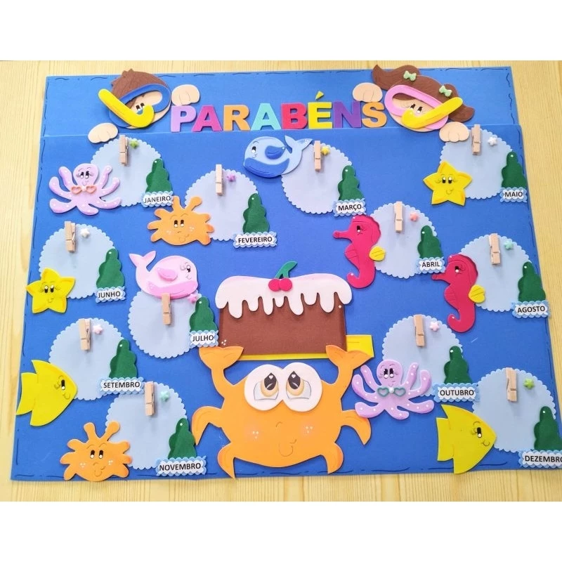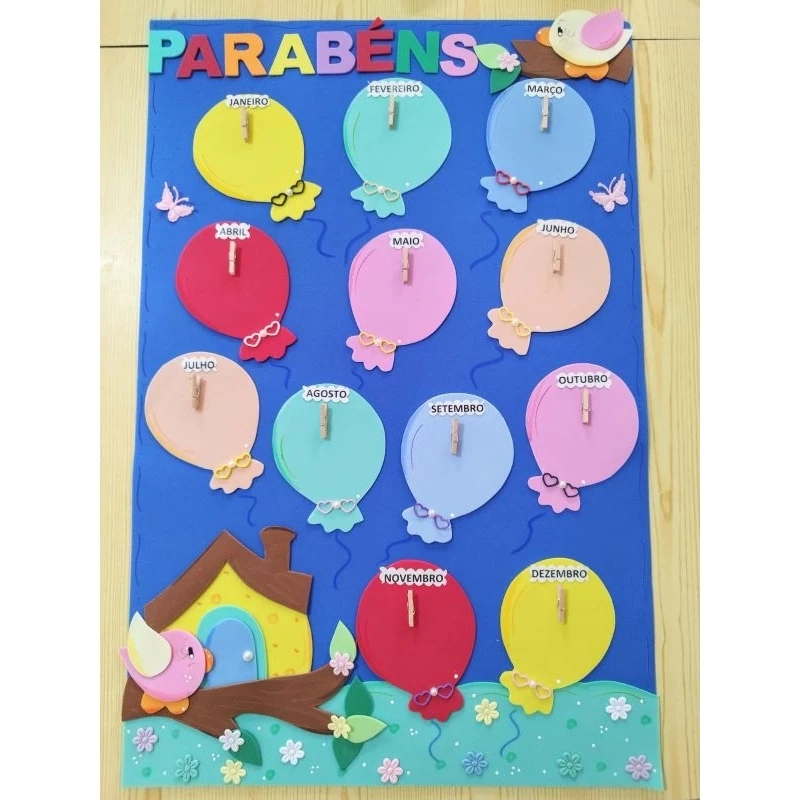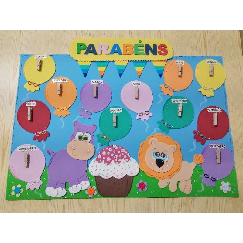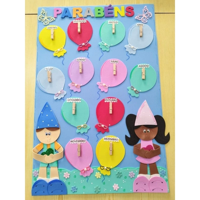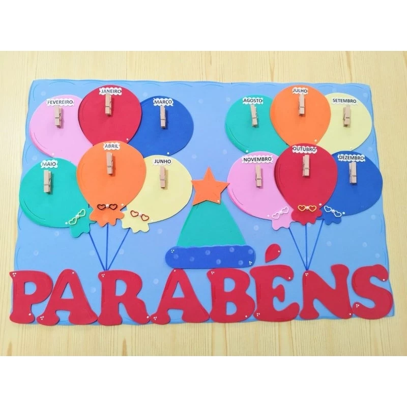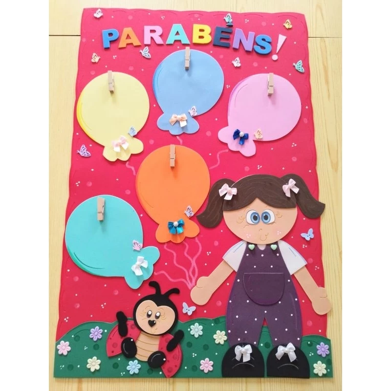 Palavras-chave: painel de parabéns, decoração EVA, festas escolares, aniversário infantil, celebrações na escola, BNCC, educação infantil.