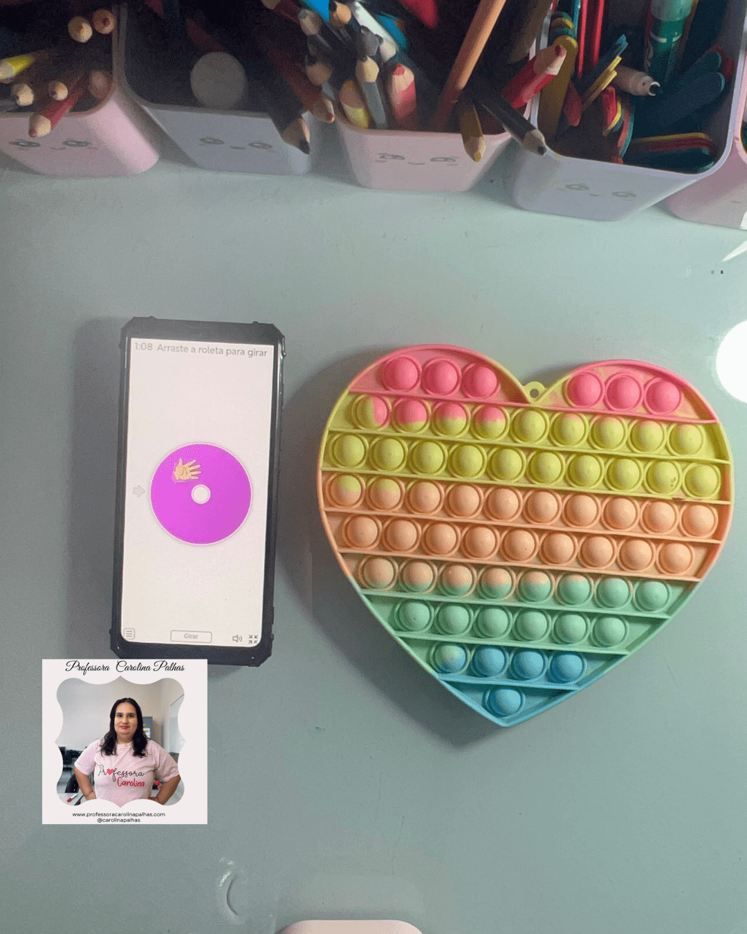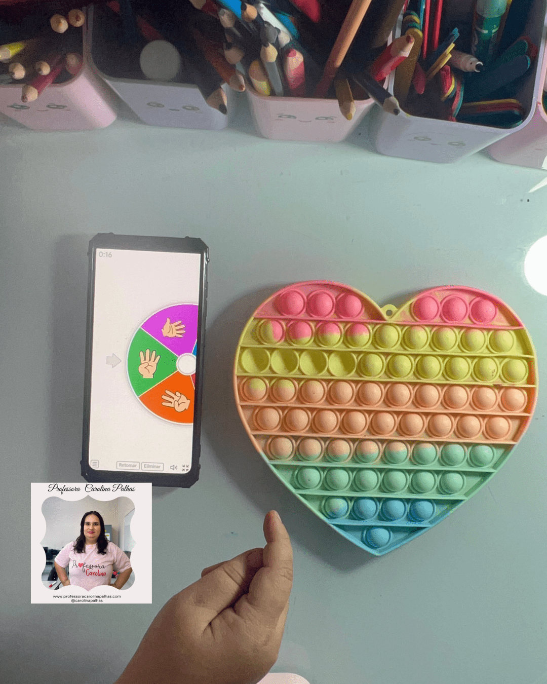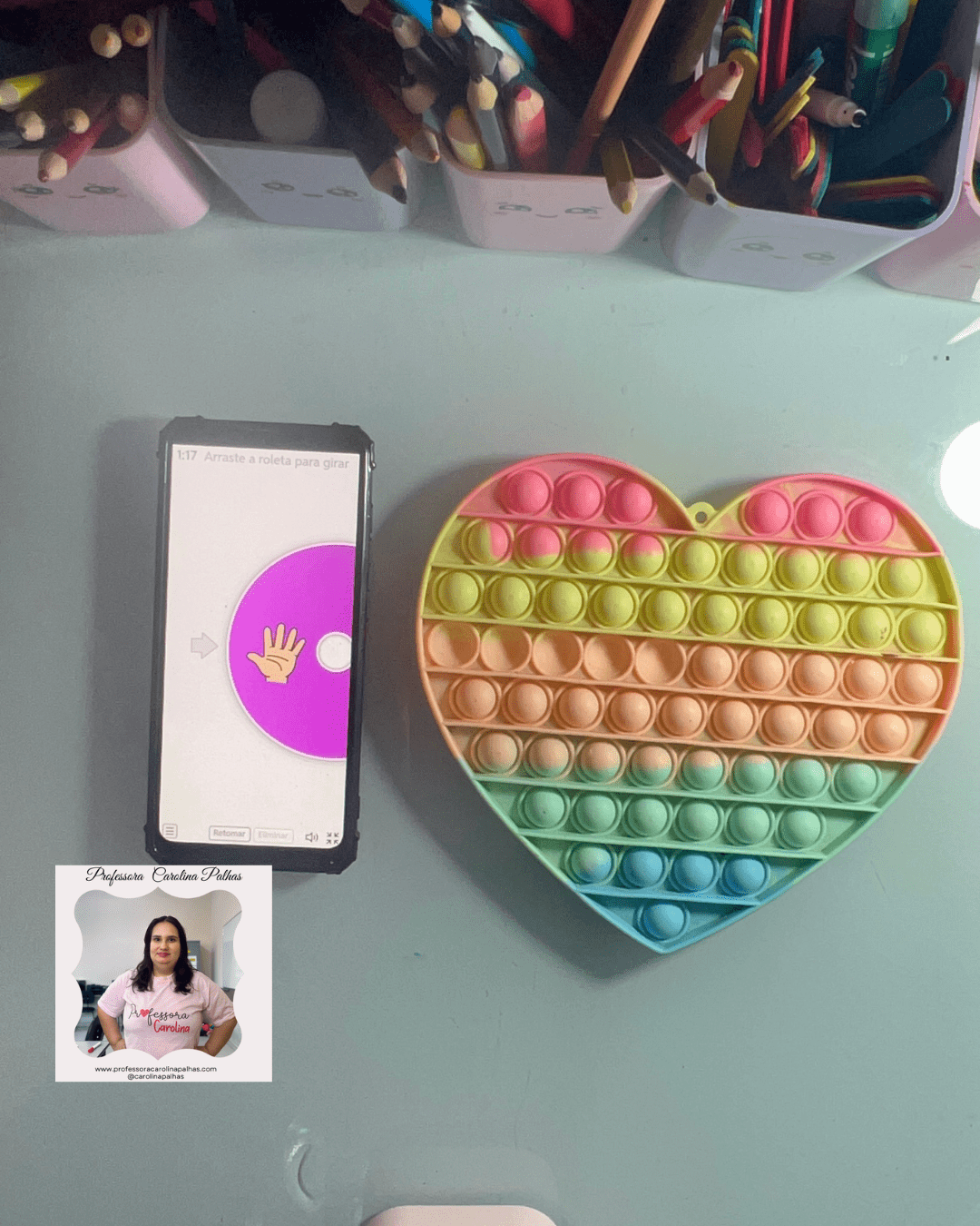 - Atividade: As crianças giram a roleta digital e devem apertar no Pop It o número correspondente.