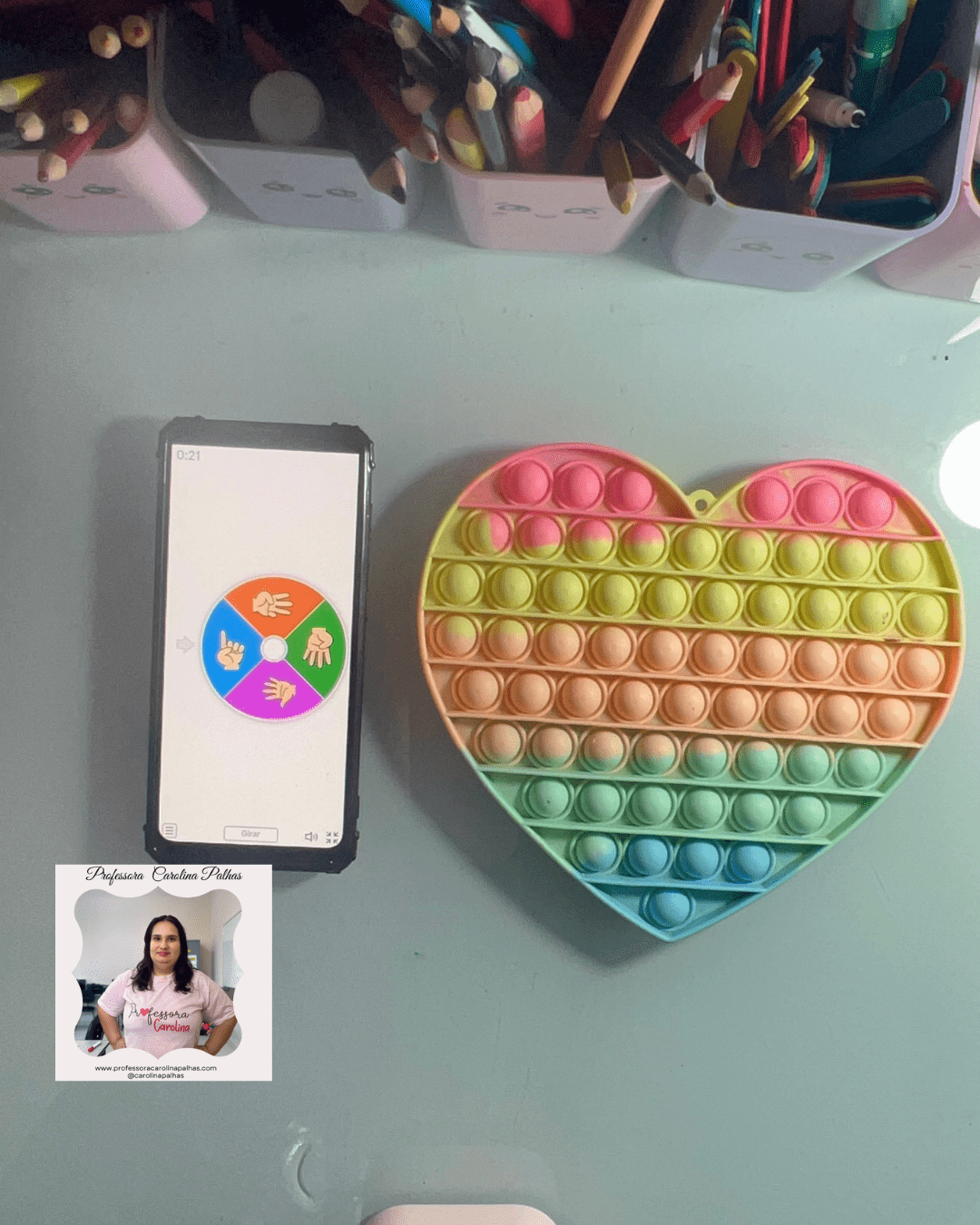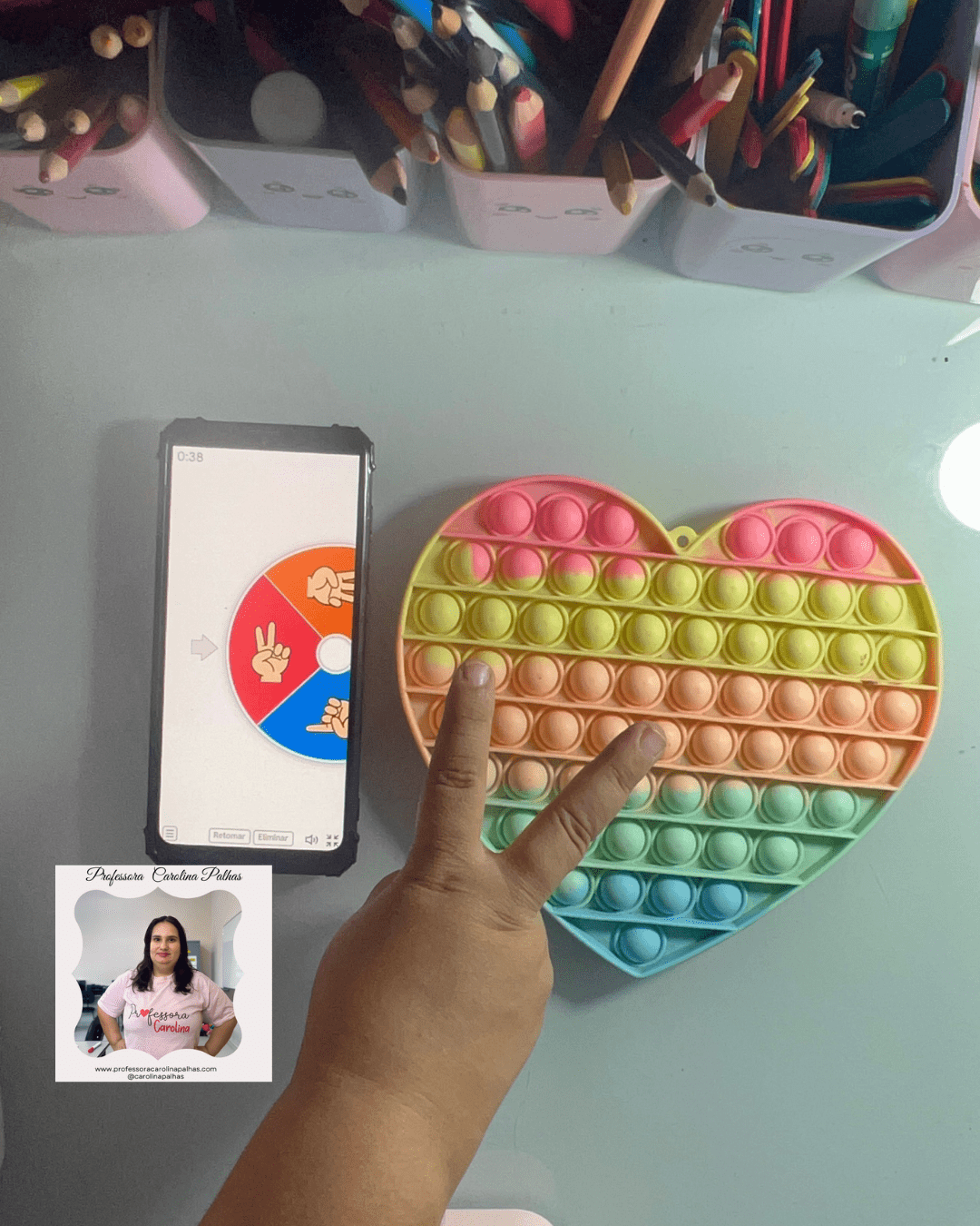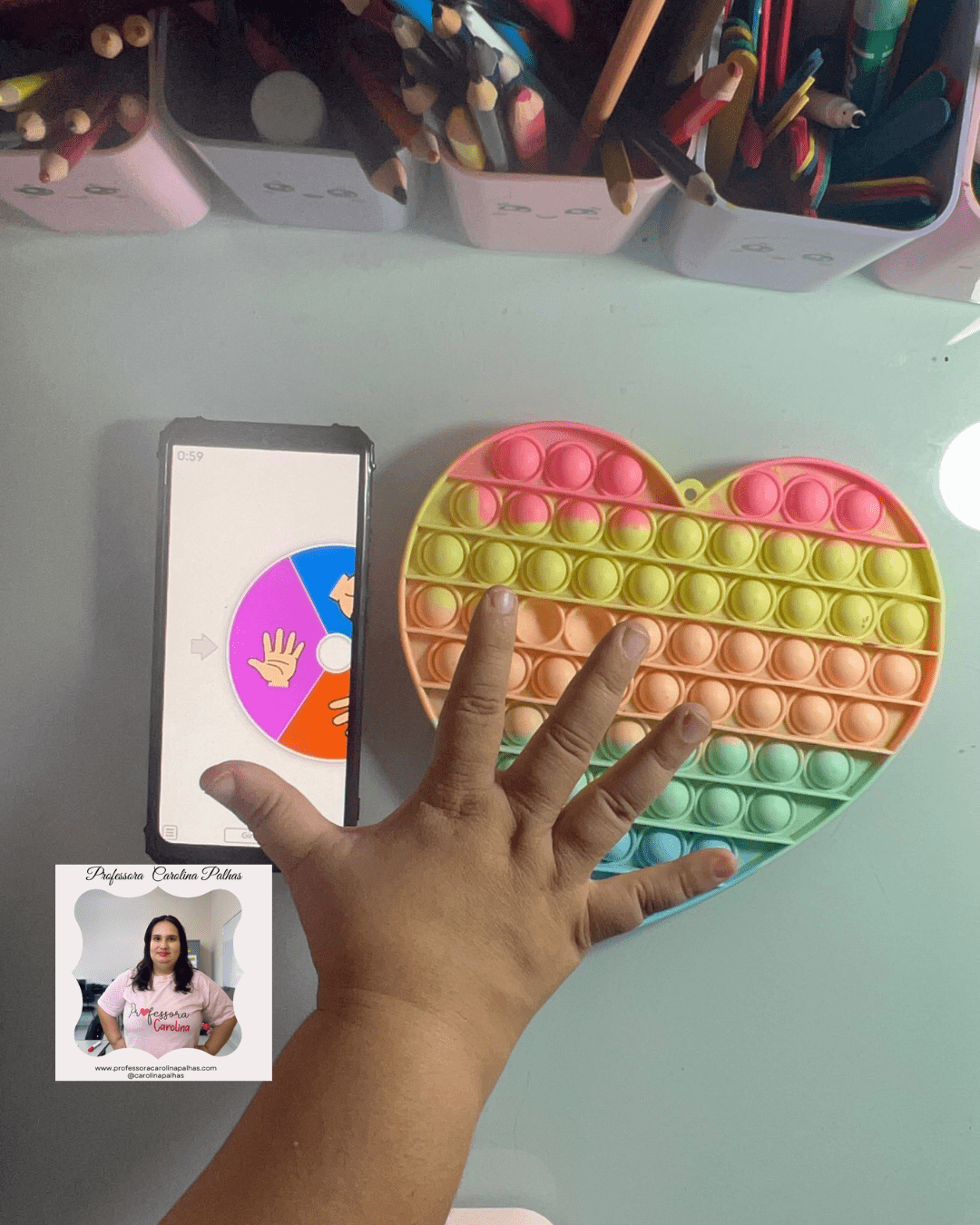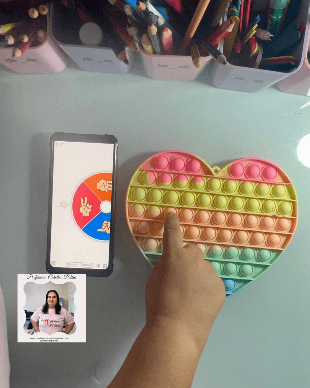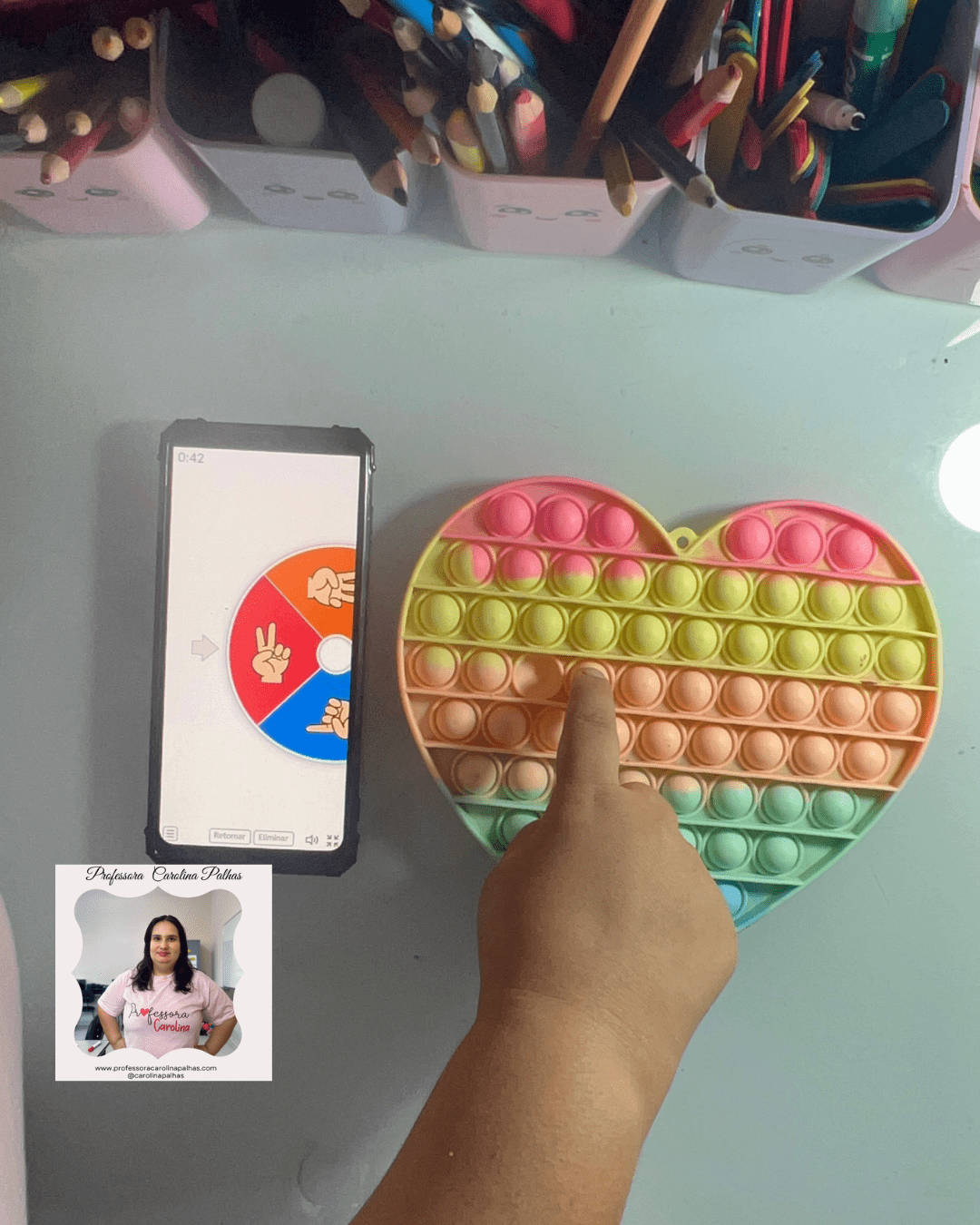 - Atividade: Utilize o Pop It para as crianças identificarem cores enquanto apertam os botões correspondentes.