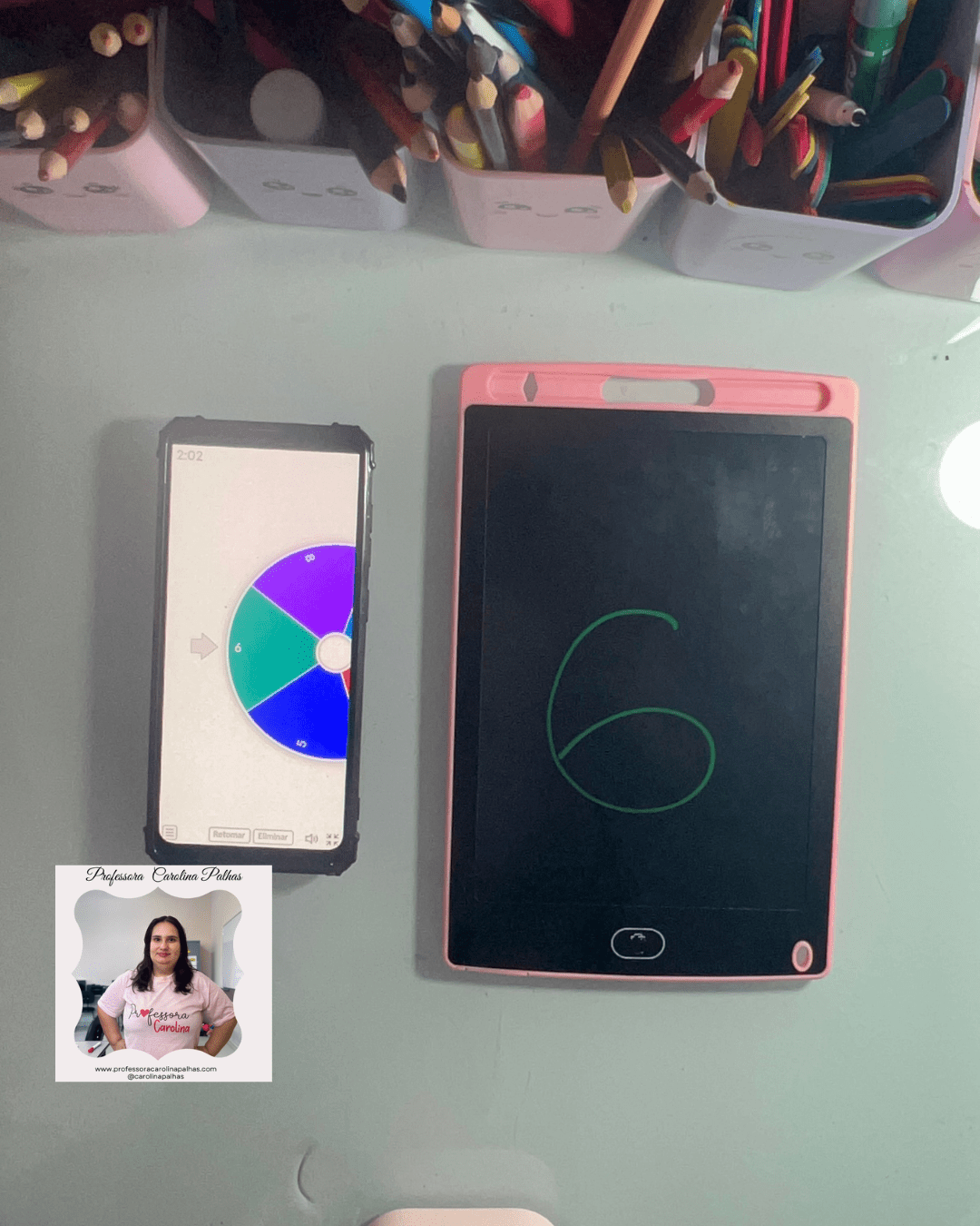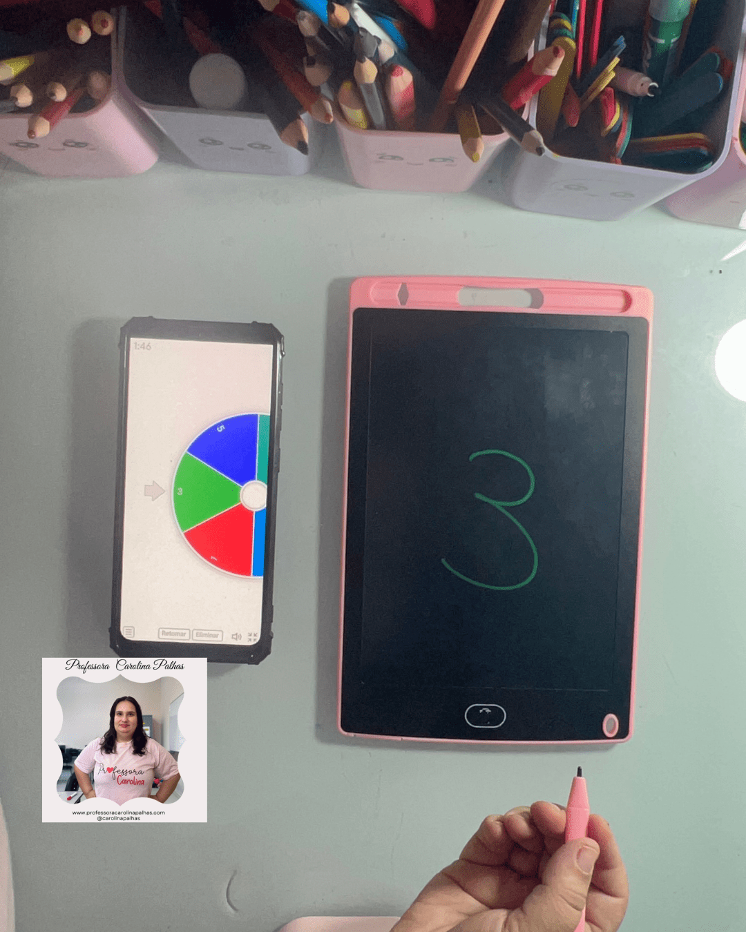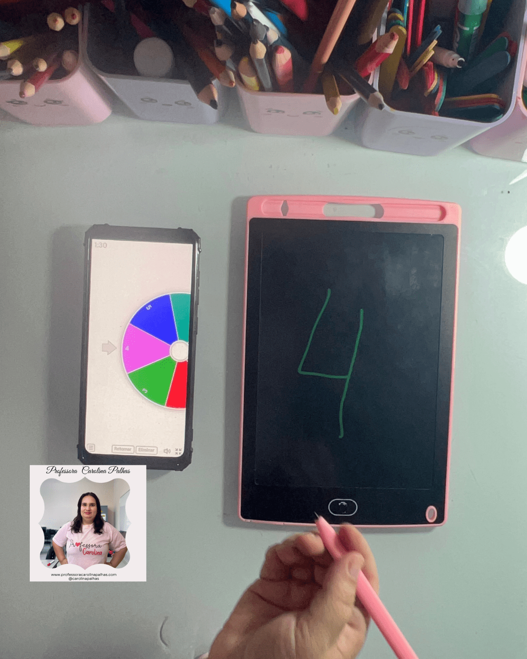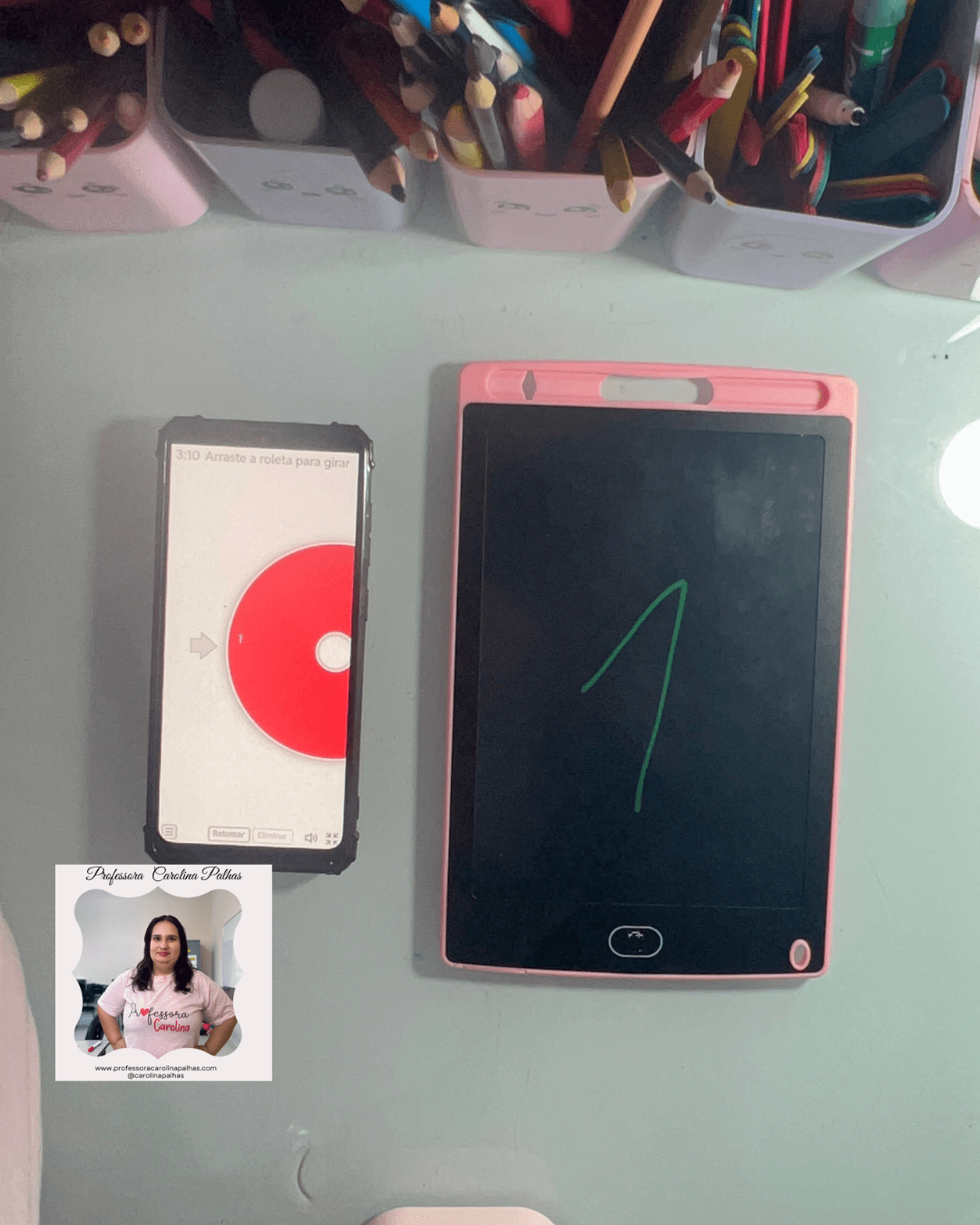 - Atividade: Utilize a Roleta dos Números. Cada criança gira e escreve o número sorteado no Tablet Mágico.