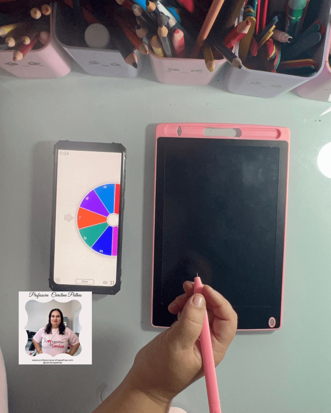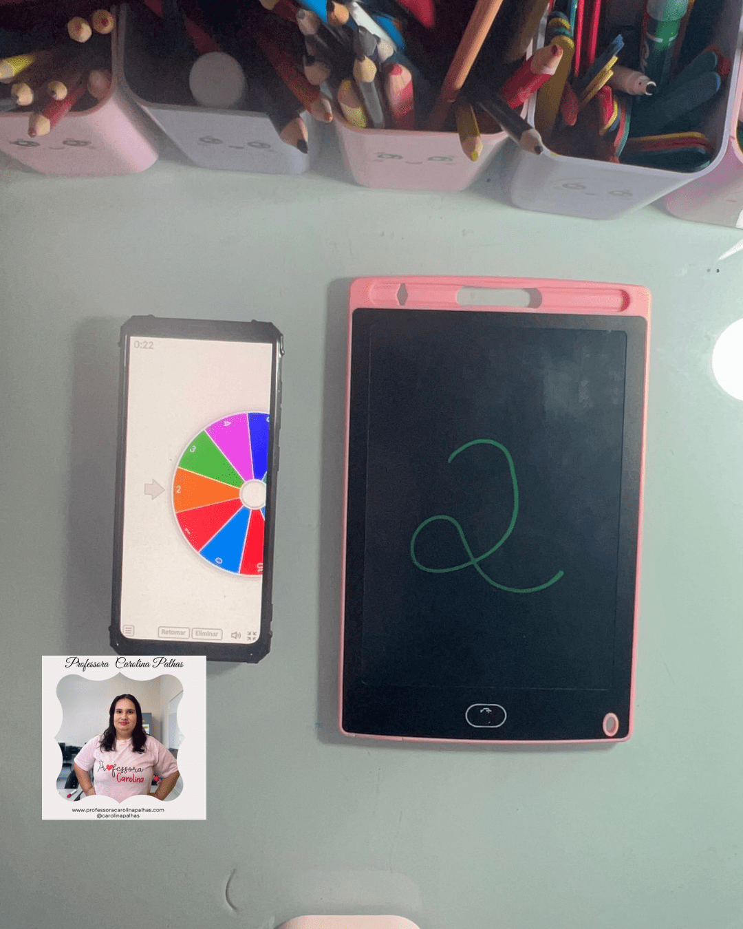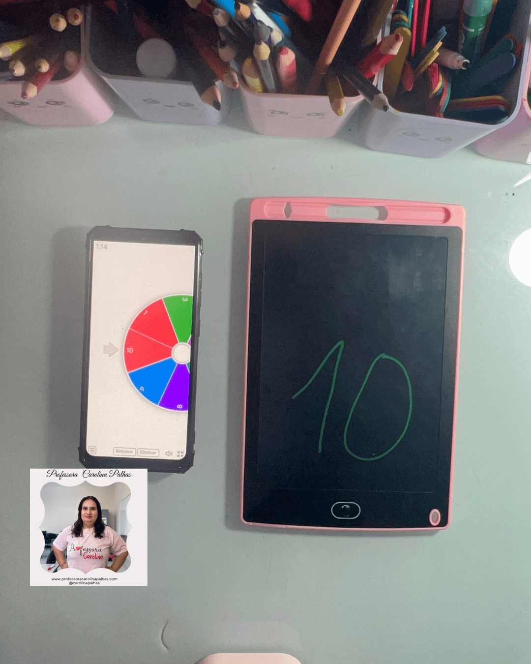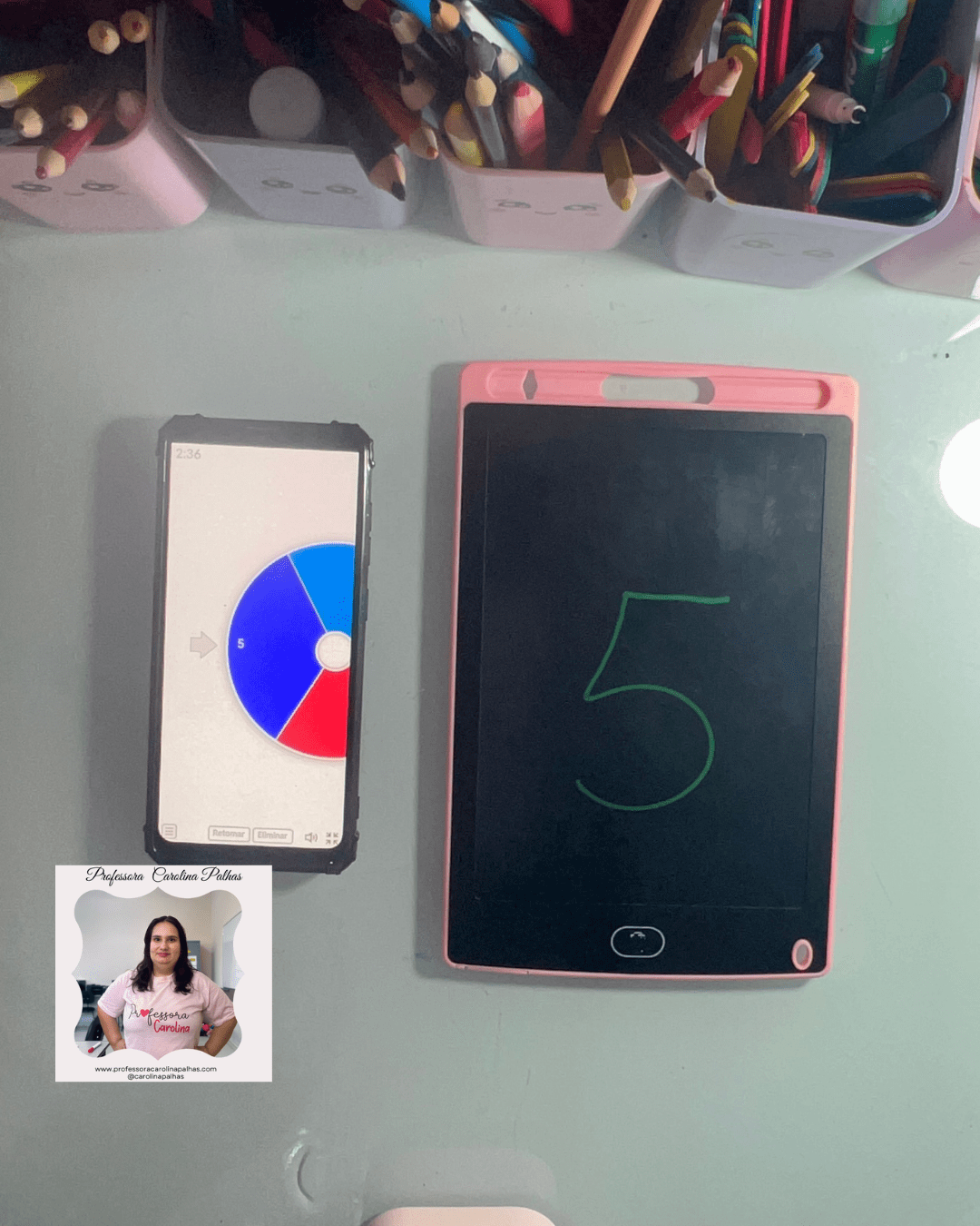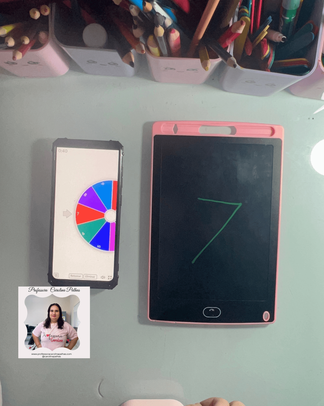 - Atividade: Utilize a Roleta dos Números. Cada criança gira e escreve o número sorteado no Tablet Mágico.