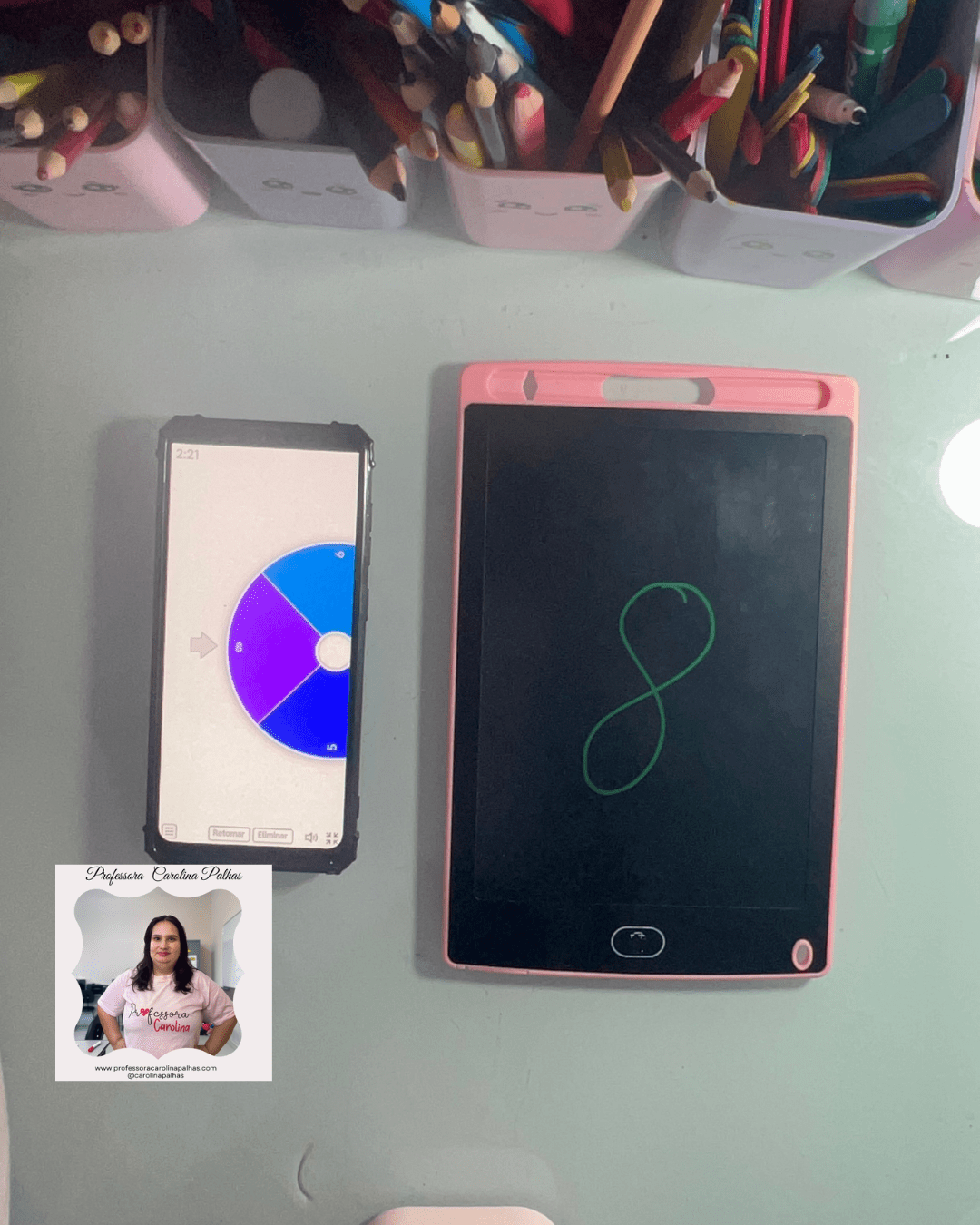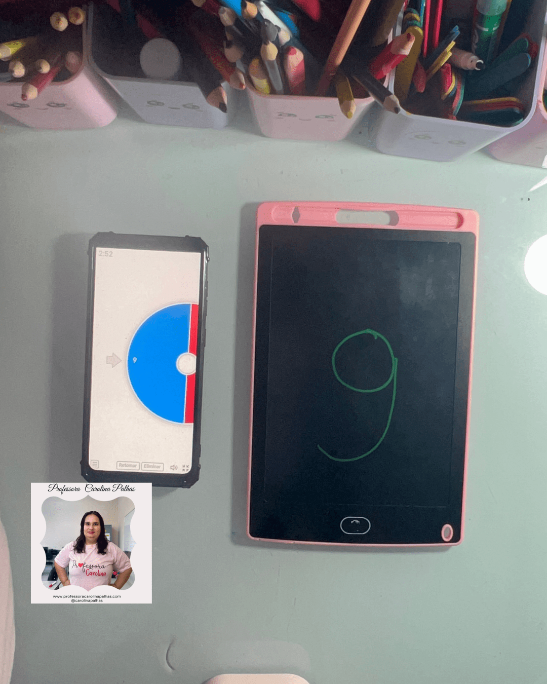 - Habilidades motoras finas: ao desenhar ou escrever os números na lousa mágica.