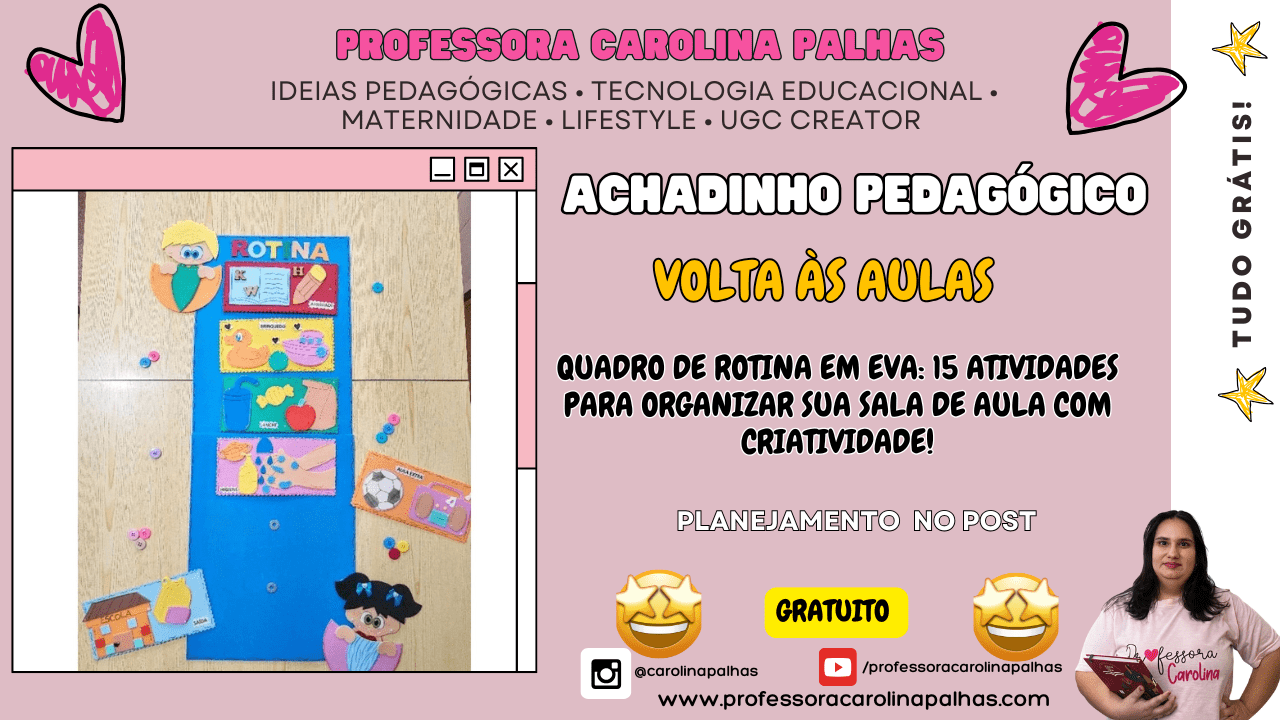 Essas 20 atividades integradas ao Quadro de Rotina em EVA tornam a sala de aula um espaço mais organizado, dinâmico e divertido! Garanta o seu e implemente essas ideias agora mesmo: