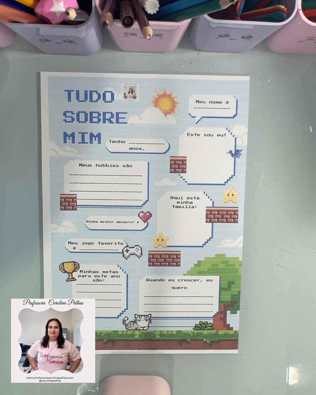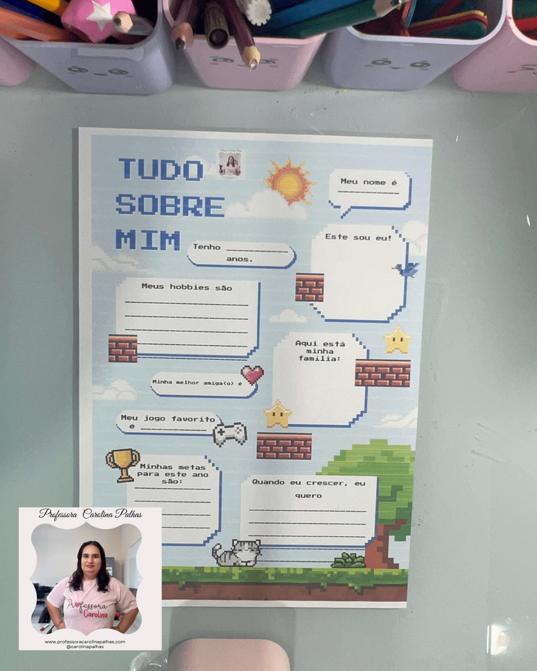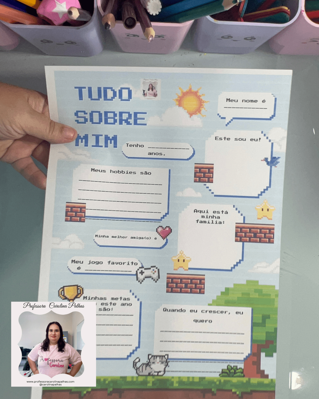 - Descrição: Os alunos se dividem em duplas e preenchem um “cartão de entrevista” com perguntas sobre seu colega.