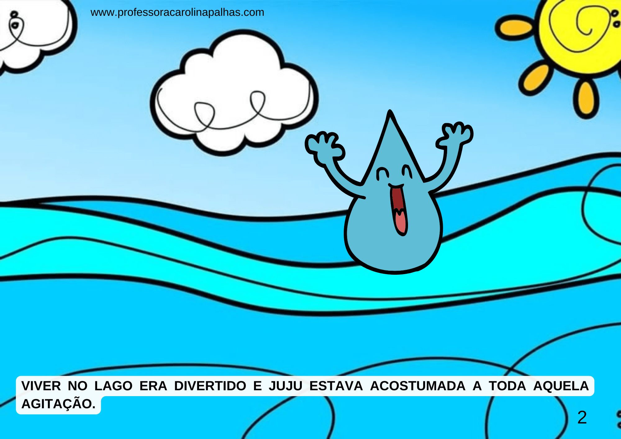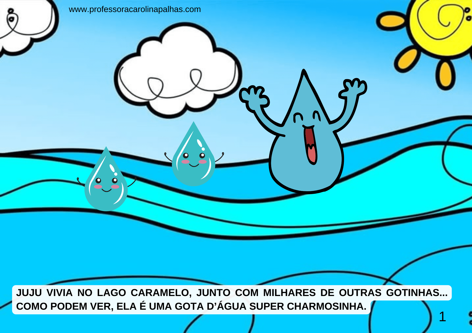 A história apresenta Juju, uma gotinha animada que embarca em uma jornada através do ciclo da água. Juju começa no oceano, aquece com o sol e evapora, transformando-se em vapor. No céu, encontra outras gotinhas e forma nuvens fofinhas. Com o frio, Juju e suas amigas se juntam e caem em forma de chuva. Algumas gotas vão para os rios, outras penetram no solo, e assim a aventura continua.