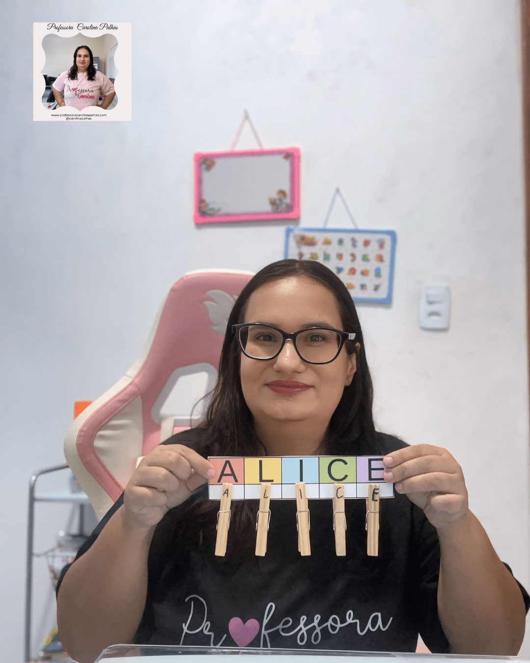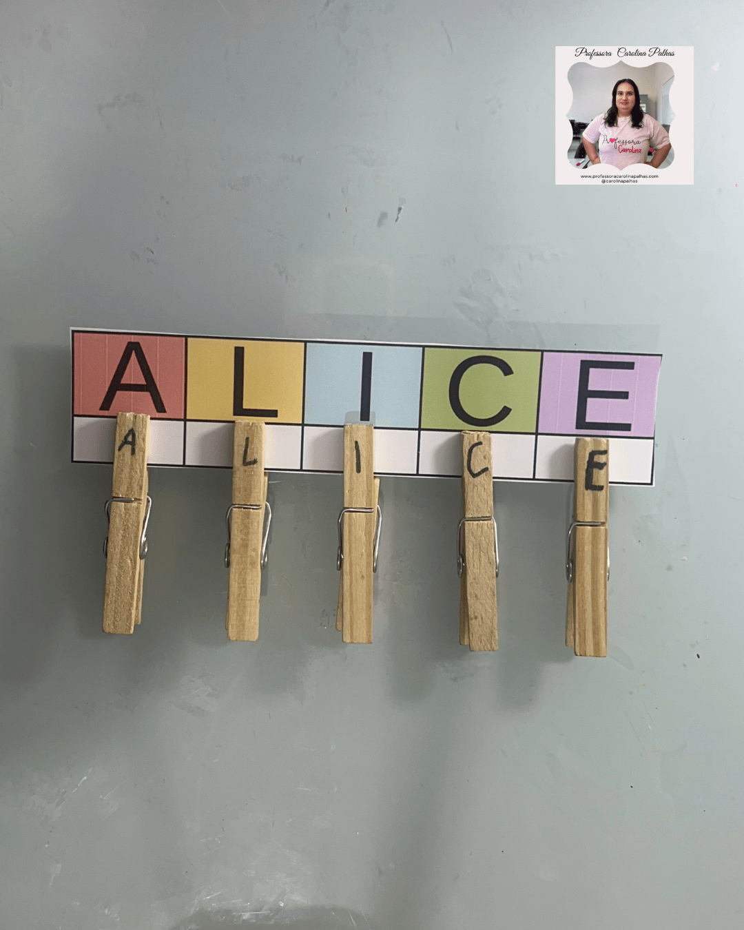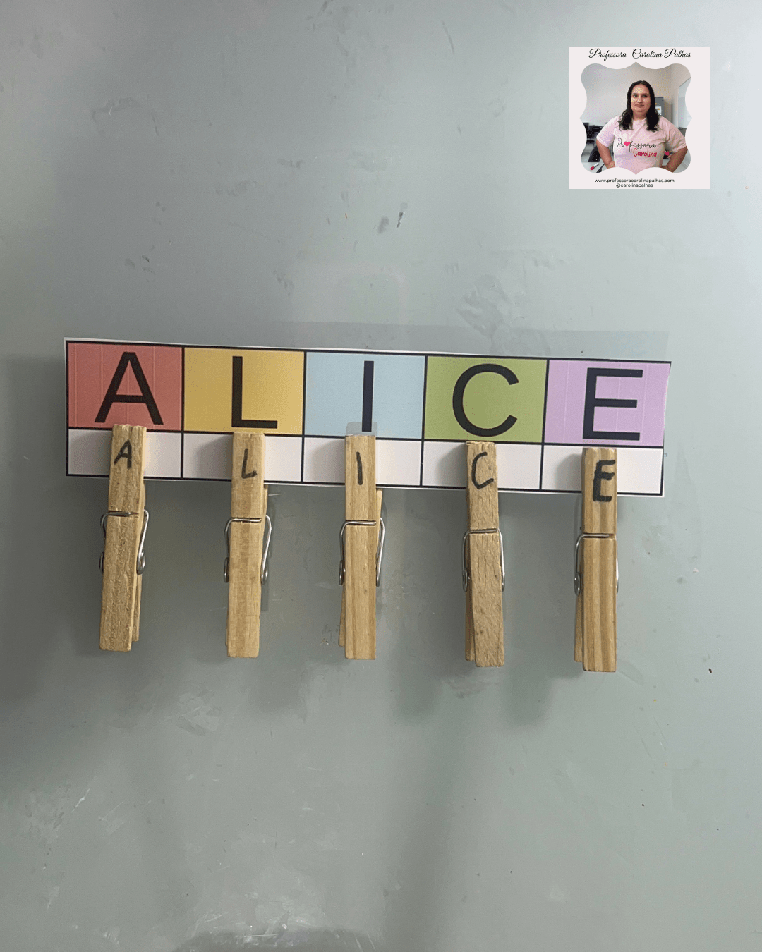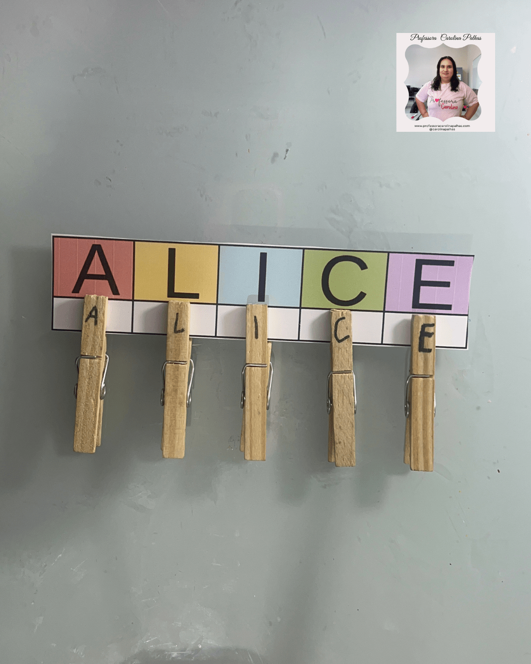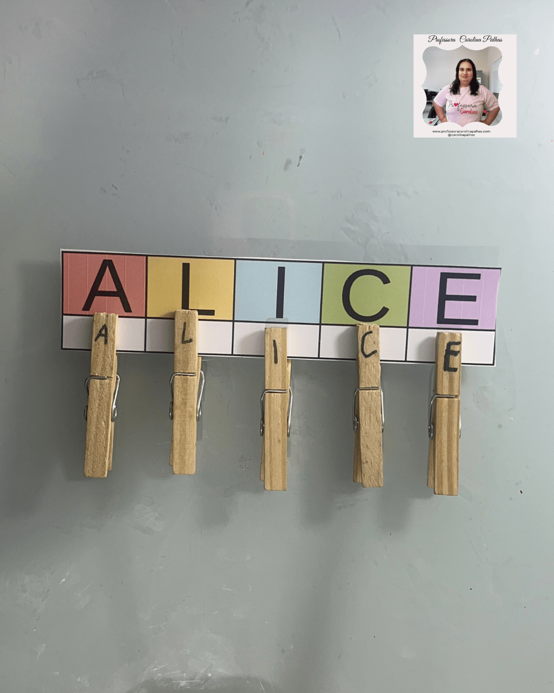 - A professora espalha as letras dos prendedores pela sala.