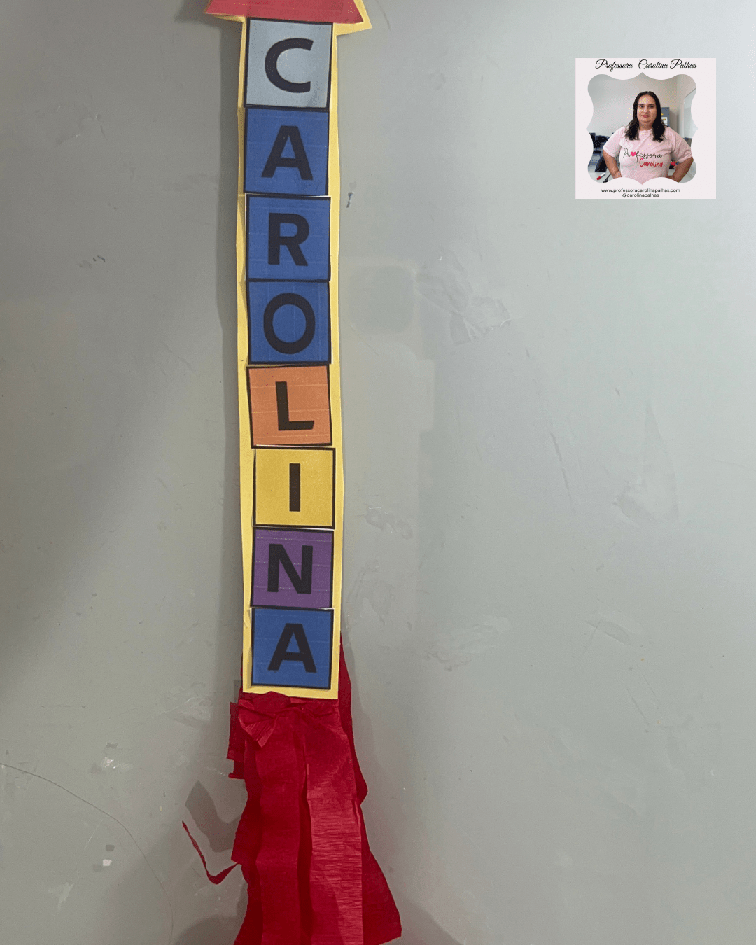 🔎 Como funciona: As crianças encontram as letras espalhadas pela sala e montam seu nome.
