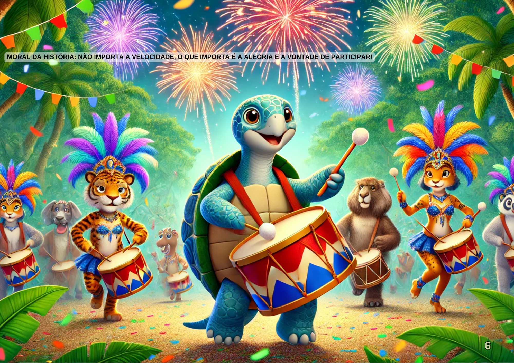• Estratégia: Criar um desfile de carnaval onde cada criança escolhe um animal da história para representar.