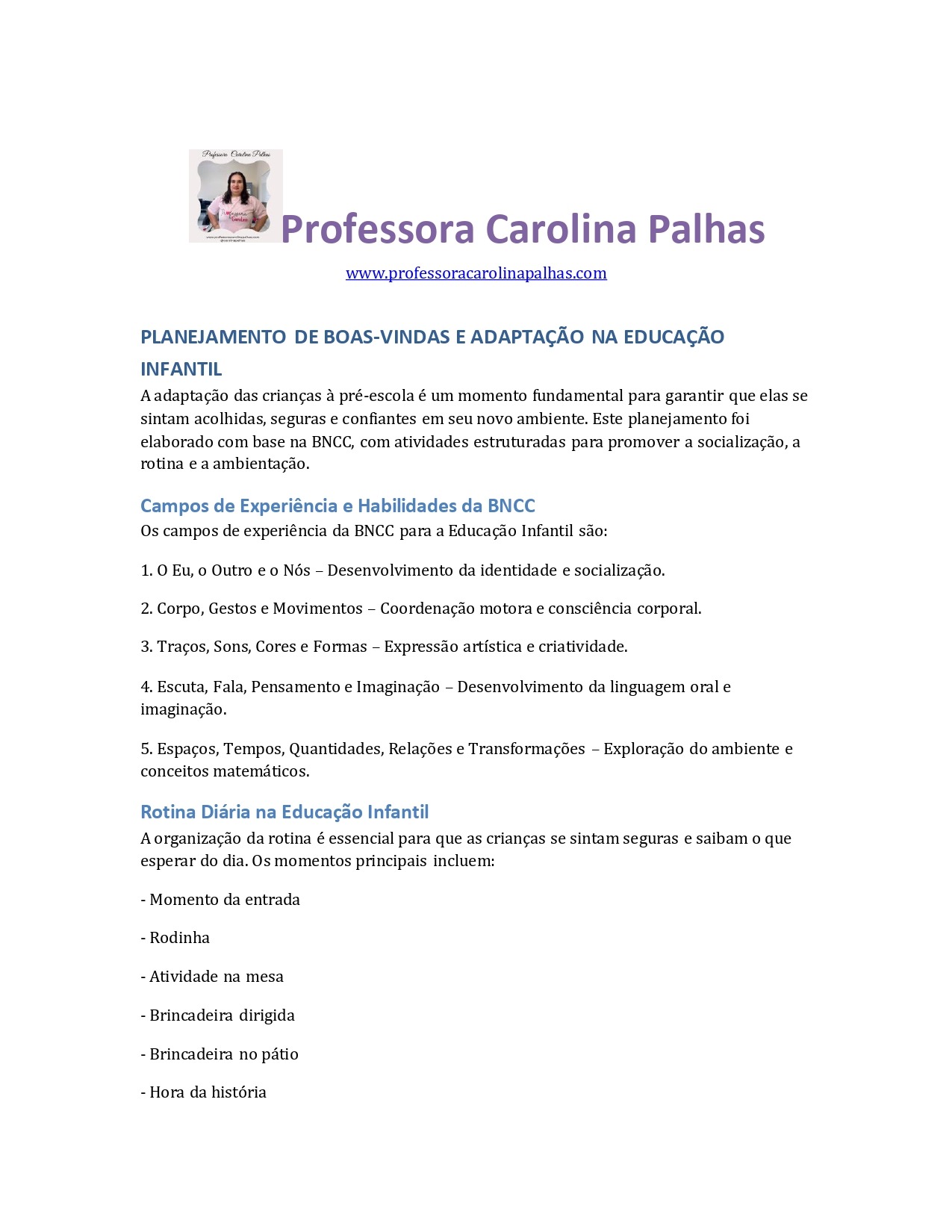 A adaptação das crianças à pré-escola é um momento fundamental para garantir que elas se sintam acolhidas, seguras e confiantes em seu novo ambiente. Este planejamento foi elaborado com base na BNCC, com atividades estruturadas para promover a socialização, a rotina e a ambientação.