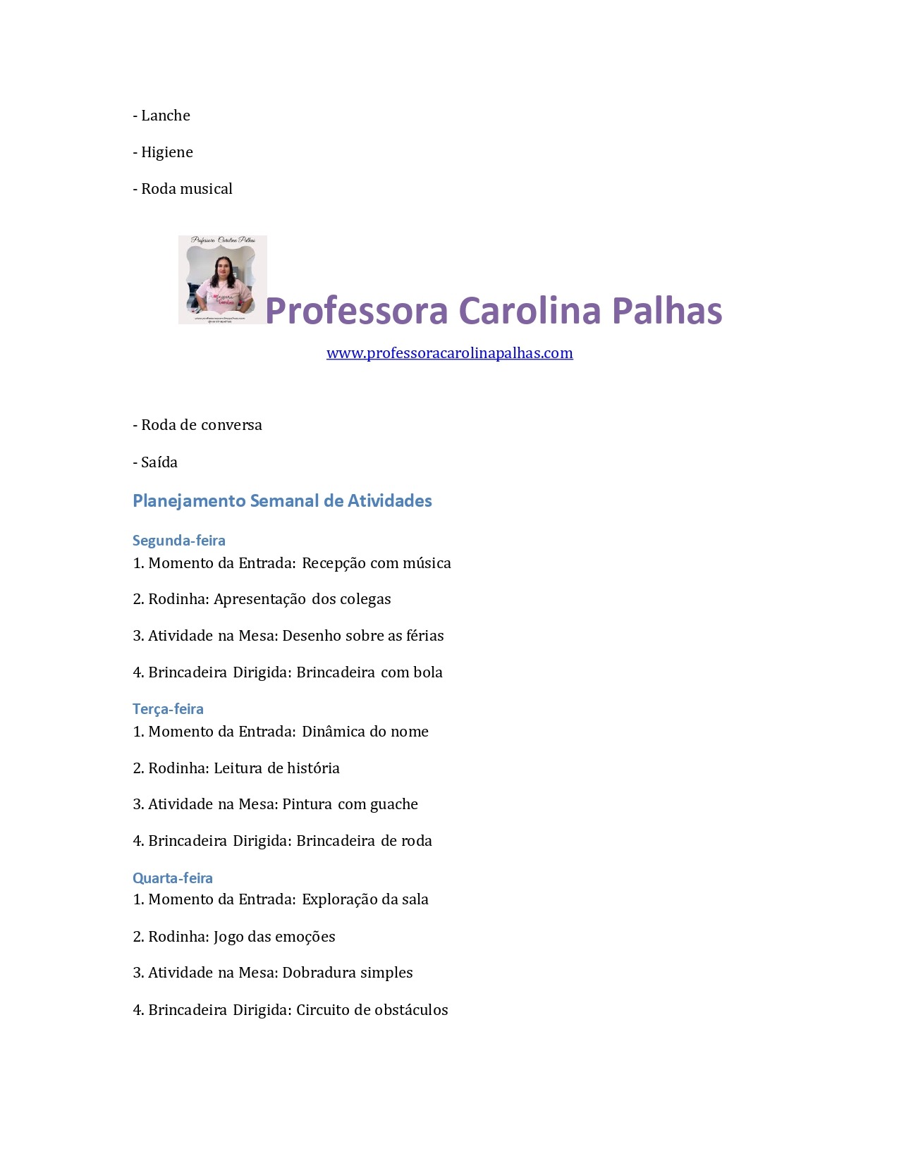 Planejamento Semanal de Atividades