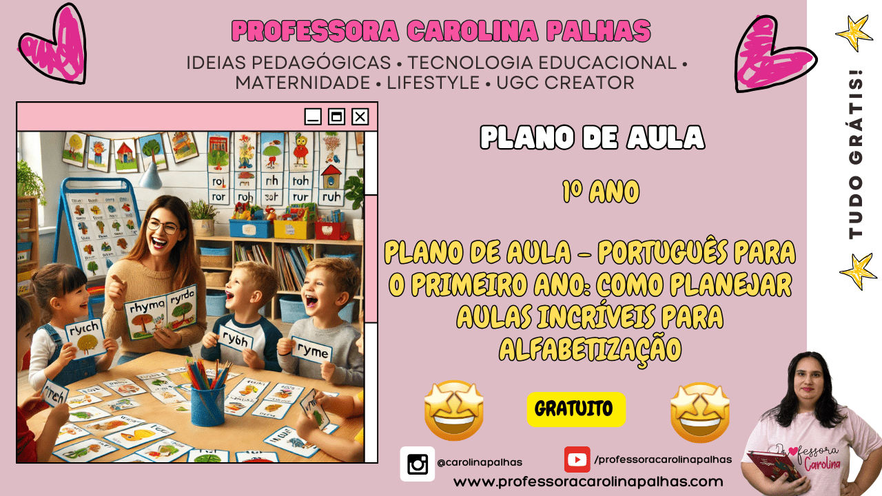 Palavras-chave: plano de aula, português, primeiro ano, alfabetização, ensino fundamental, BNCC, atividades pedagógicas, jogos educativos, crianças, leitura, escrita, consciência fonológica, métodos de ensino, planejamento escolar, ensino lúdico, dicas para professores