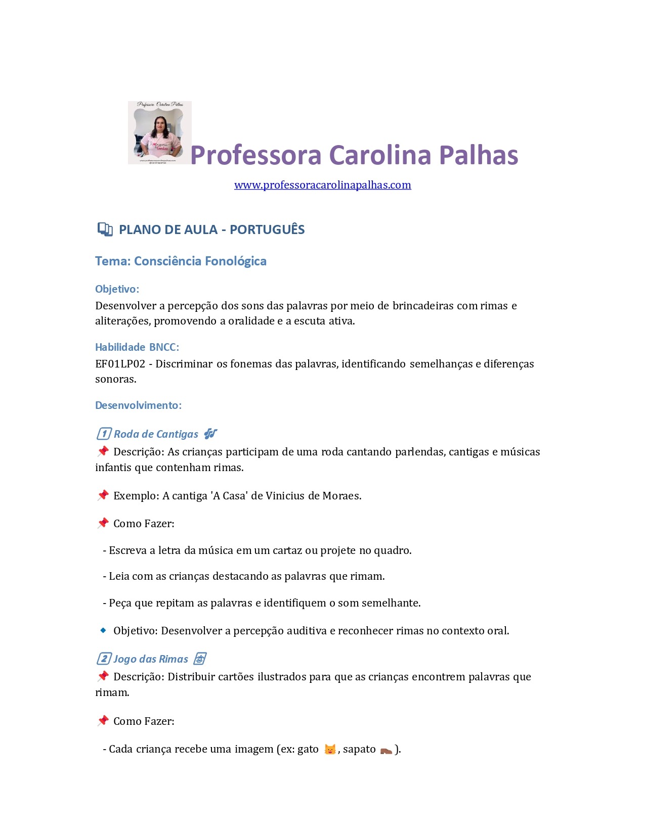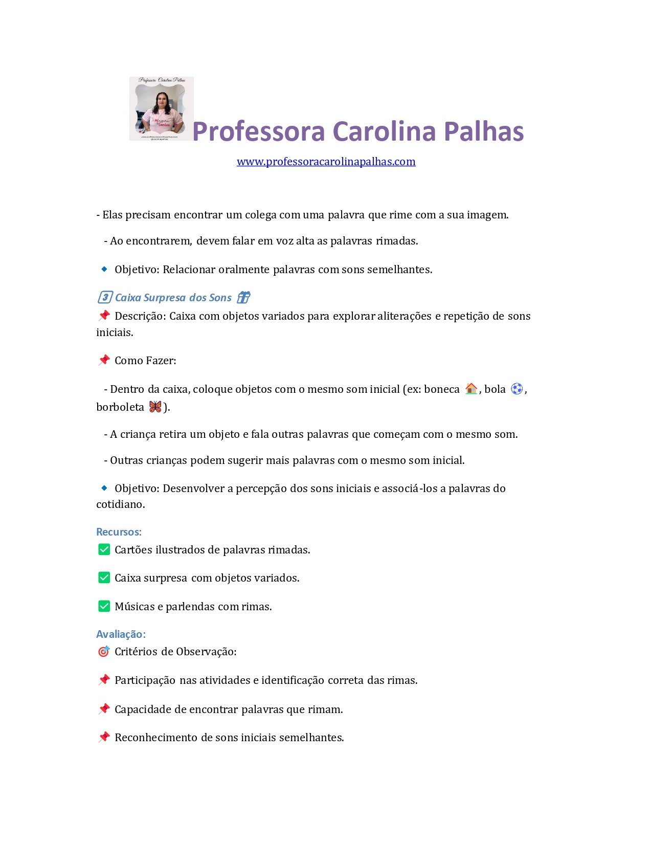 ✅ Músicas e parlendas com rimas.