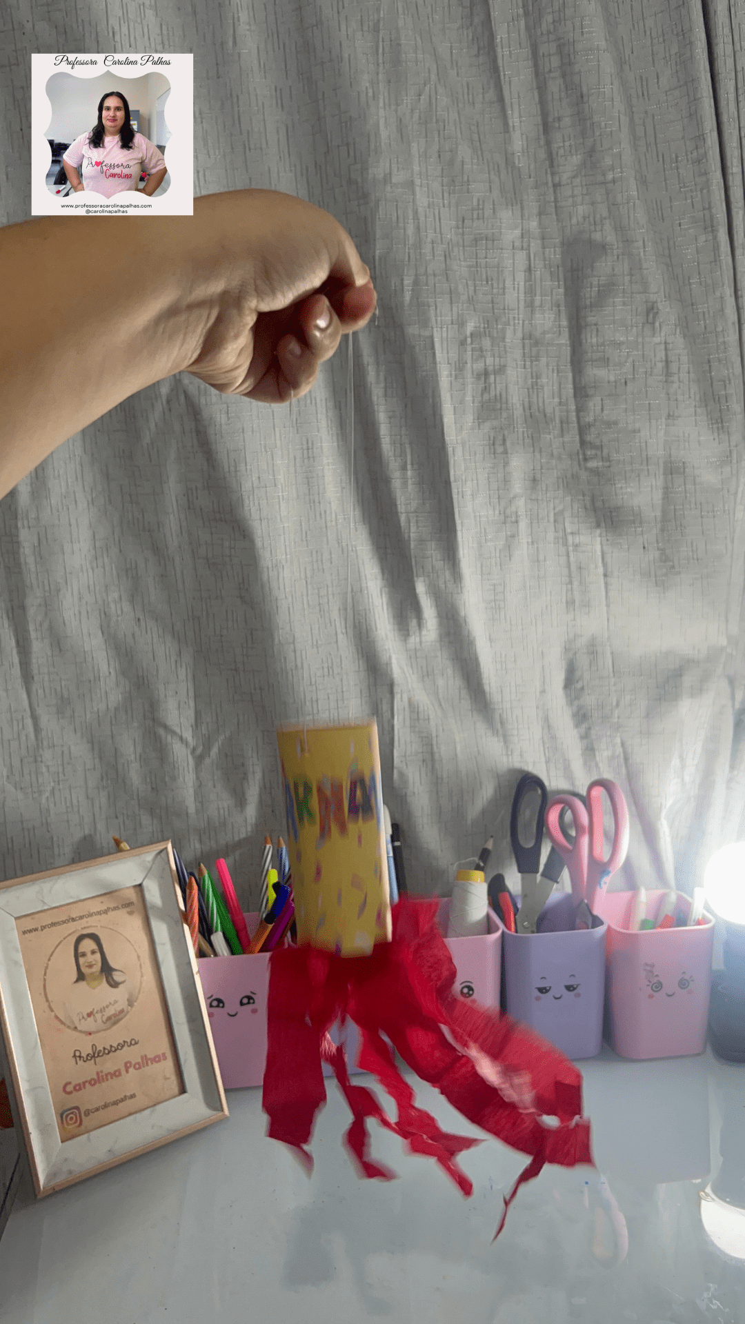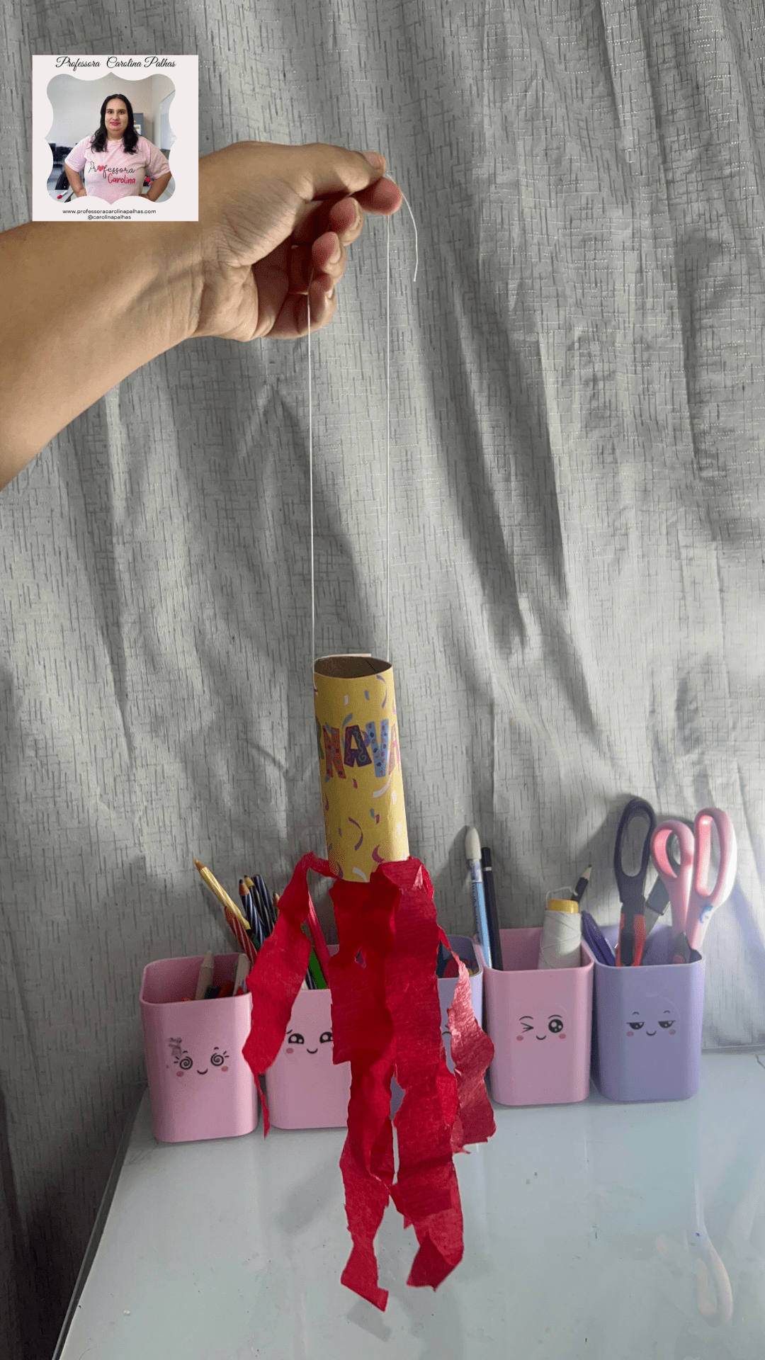 - As crianças podem pintar o rolo de papelão com guache ou cobri-lo com papel colorido.