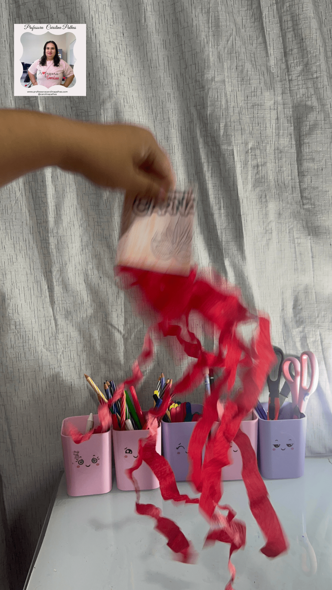 - Corte tiras de papel crepom ou fitas coloridas e cole na parte inferior do rolo.