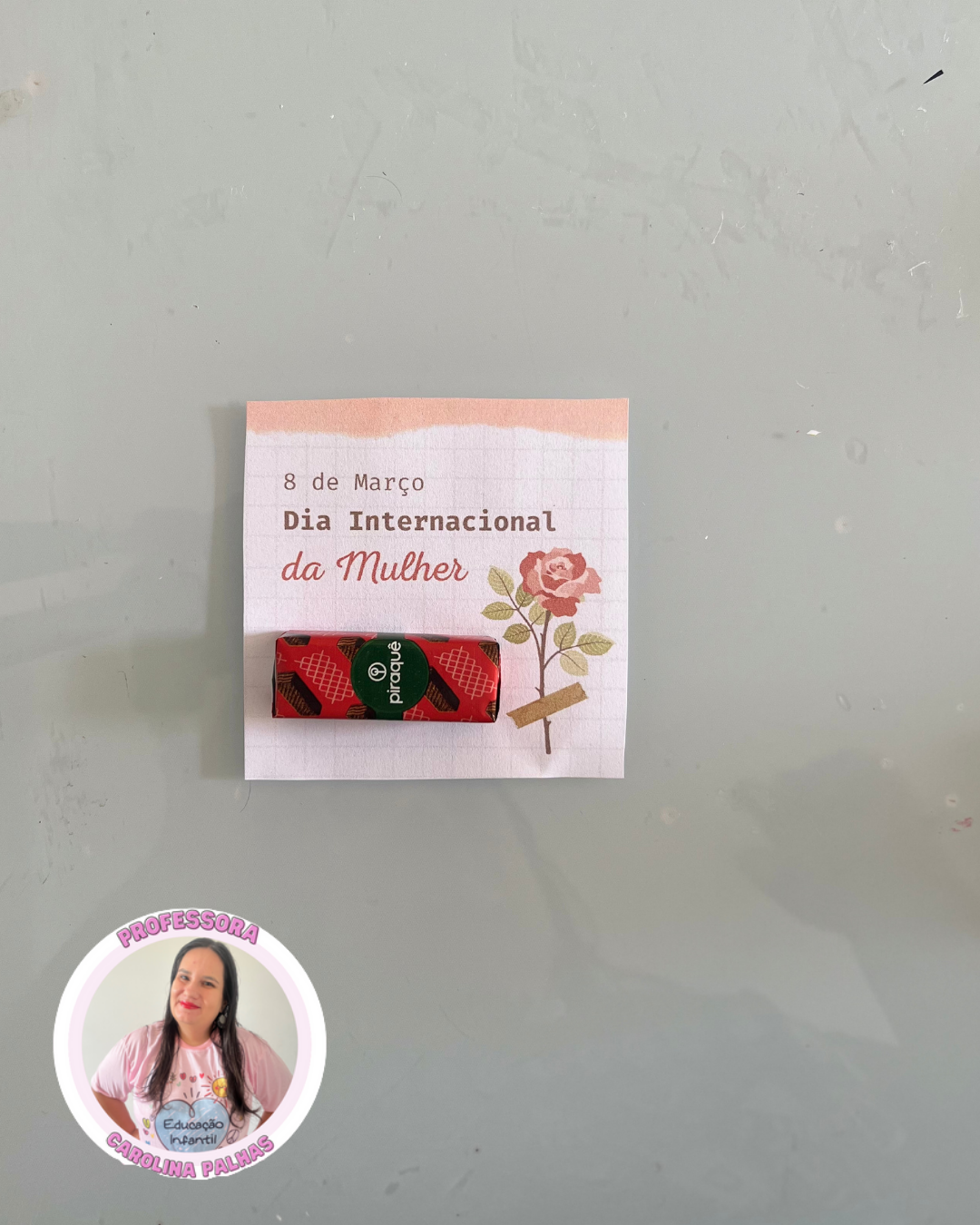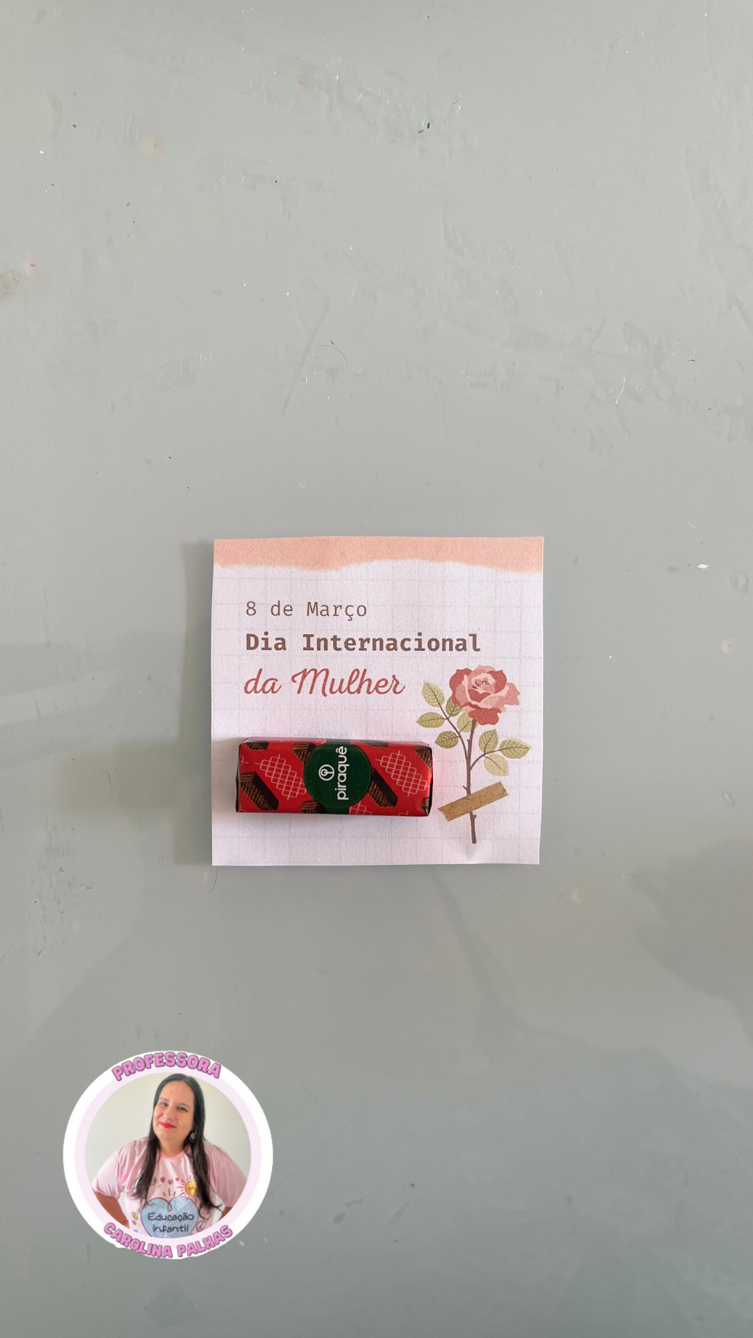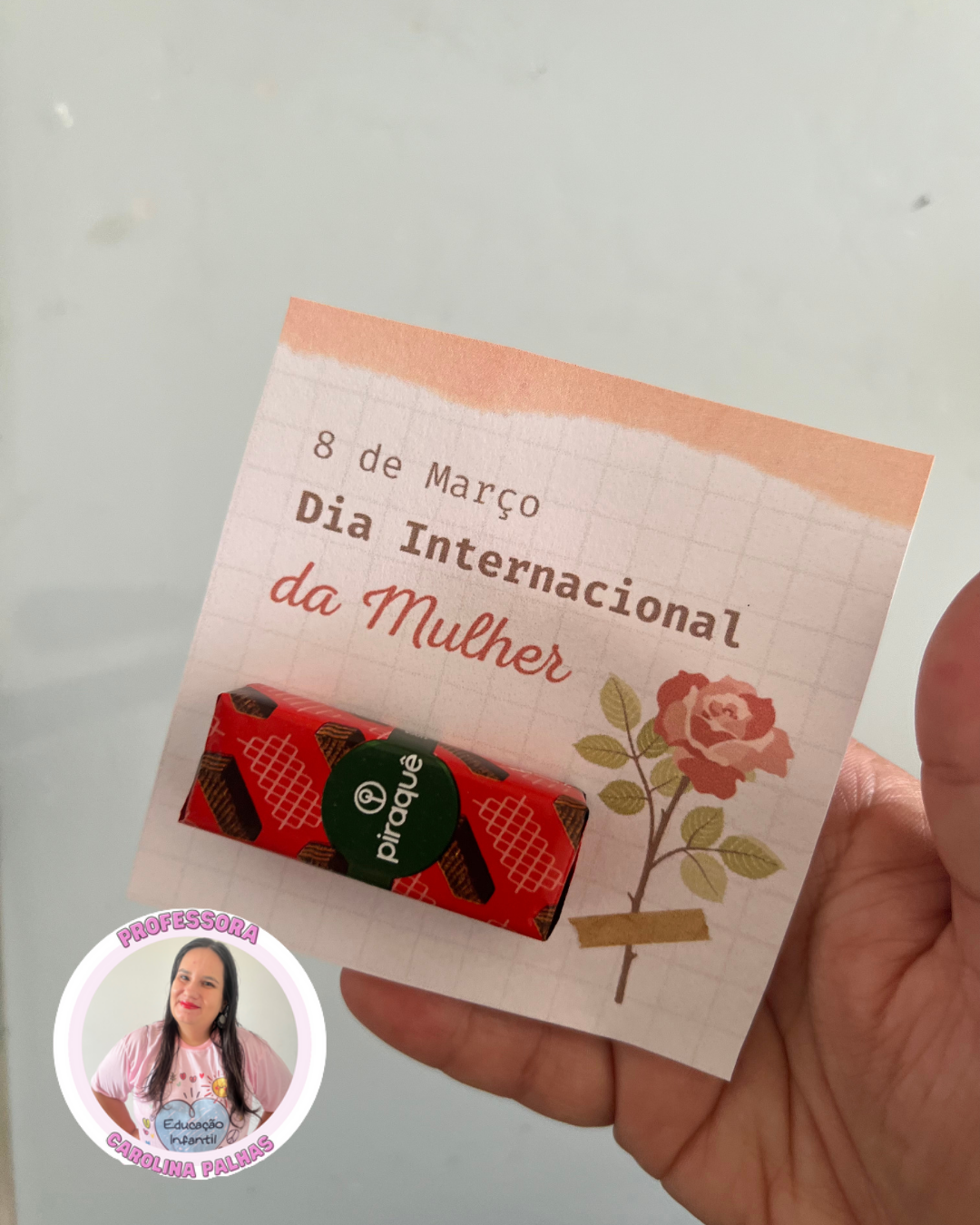 Nesta atividade, as crianças criarão um cartão personalizado para homenagear uma mulher especial. A base do cartão contém uma mensagem inspiradora, e um mimo (como um bombom ou barrinha de chocolate) pode ser colado como detalhe especial.
