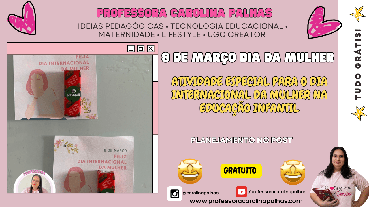 Palavras-chave: Dia Internacional da Mulher, cartão comemorativo, atividades para crianças, educação infantil, maternal, pré-escola, BNCC, coordenação motora, criatividade, artes, expressão emocional, homenagem, planejamento pedagógico.