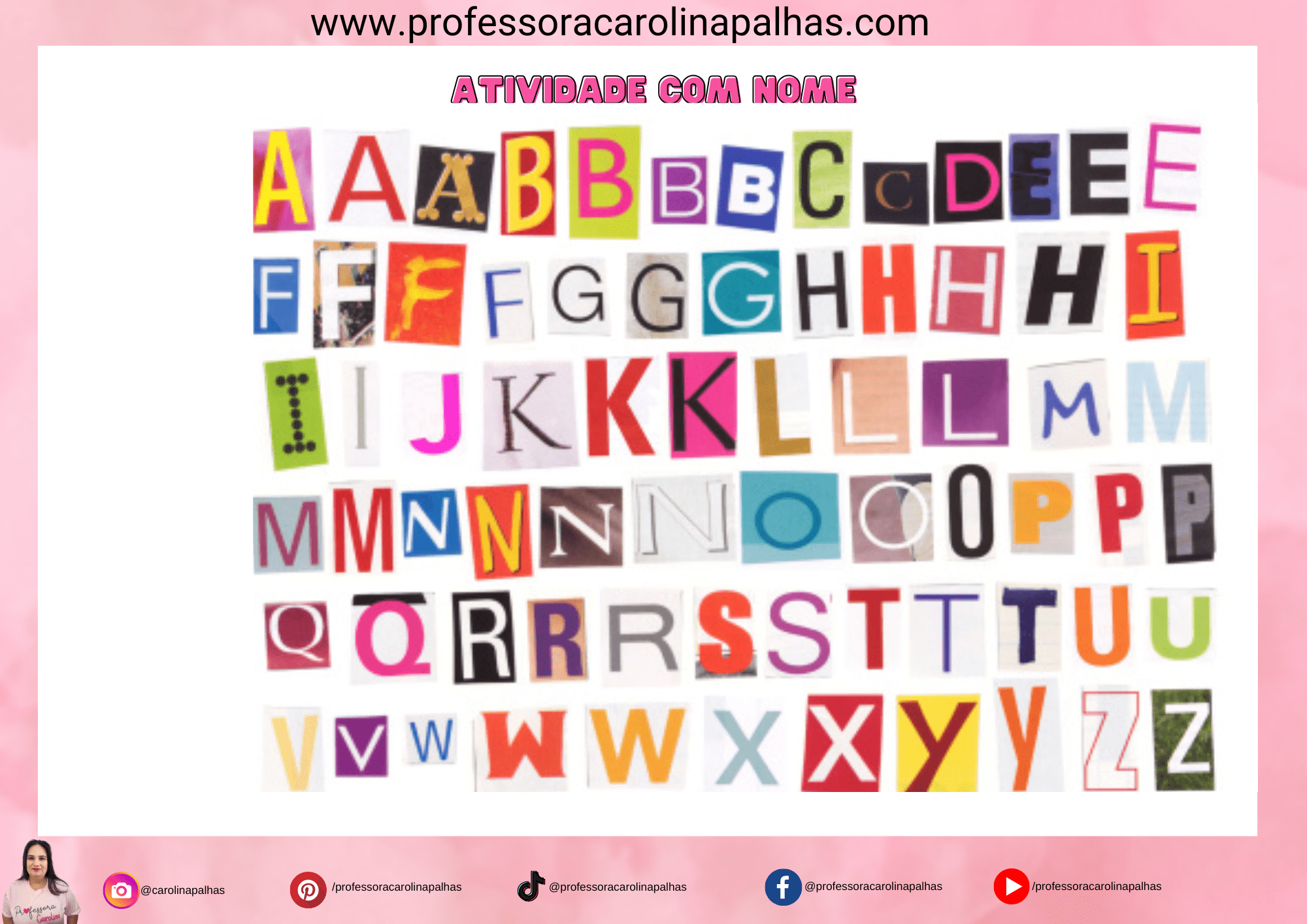 Cada dia contém três atividades lúdicas que reforçam o reconhecimento do nome e o desenvolvimento da linguagem de forma dinâmica e interativa.