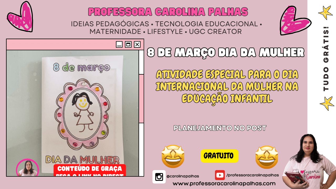 Palavras-chave: Dia Internacional da Mulher, cartão comemorativo, atividades para crianças, educação infantil, maternal, pré-escola, BNCC, coordenação motora, criatividade, artes, expressão emocional, homenagem, planejamento pedagógico.