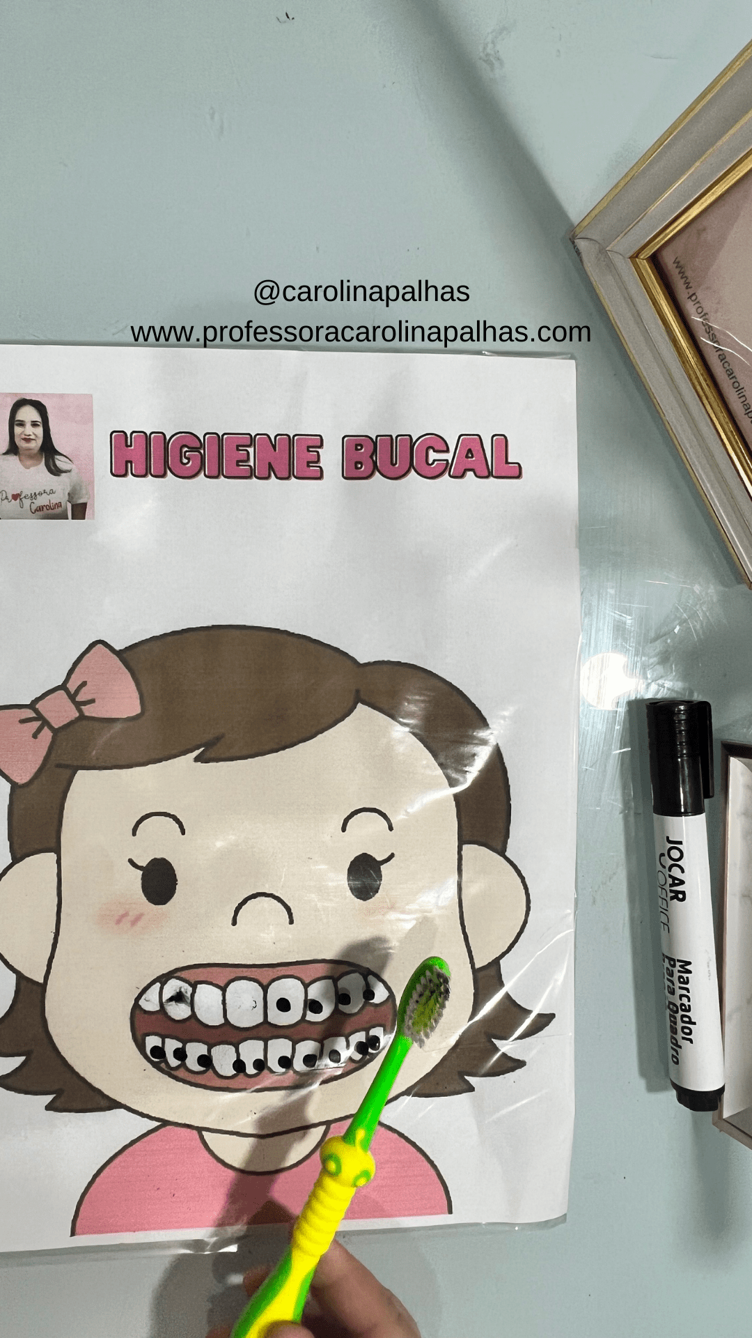 Essa atividade permite que as crianças pratiquem a escovação dos dentes de forma lúdica. Com um modelo interativo, elas podem “limpar” os dentes sujos e entender a importância de uma boa higiene bucal.