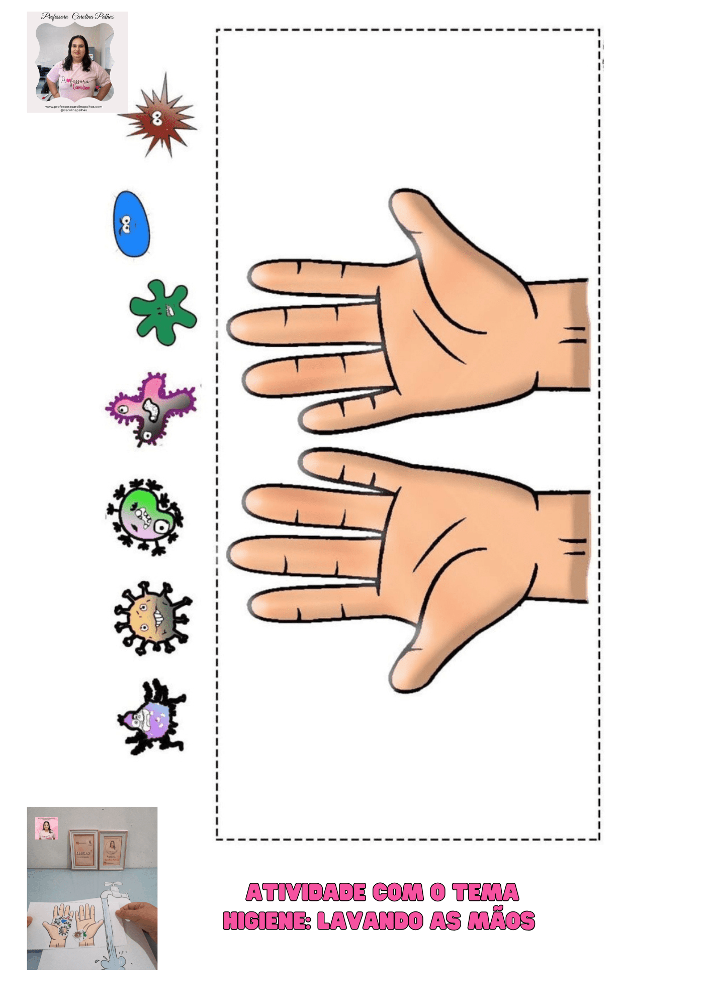 Se quiser um material pronto para imprimir e usar, conheça este kit completo com atividades sobre higiene: