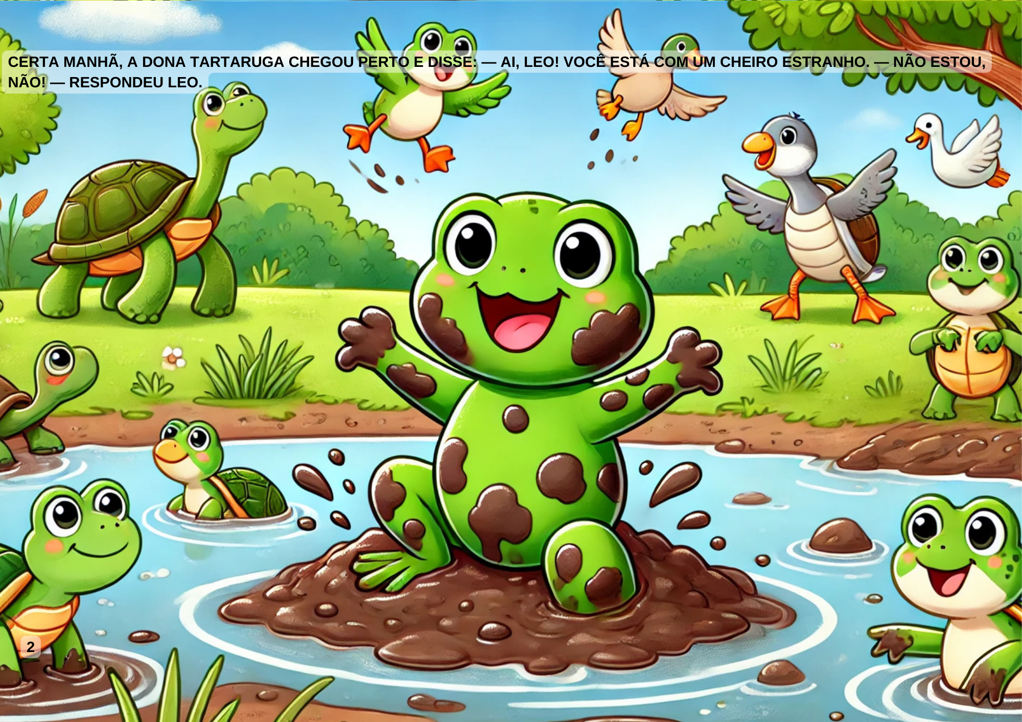 📖 Era uma vez um sapinho chamado Leo, que adorava brincar na lama. Mas havia um problema: ele nunca tomava banho! No começo, seus amigos não ligavam, mas, com o tempo, Leo começou a cheirar muito mal.