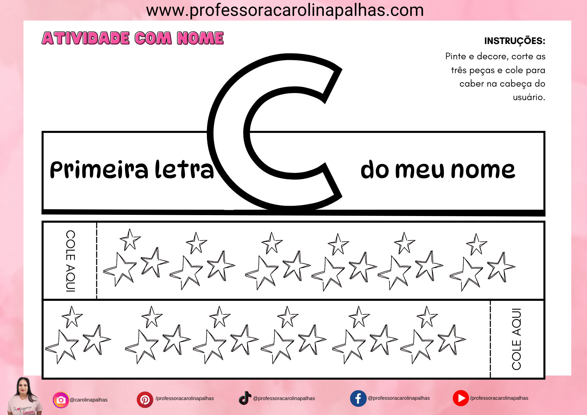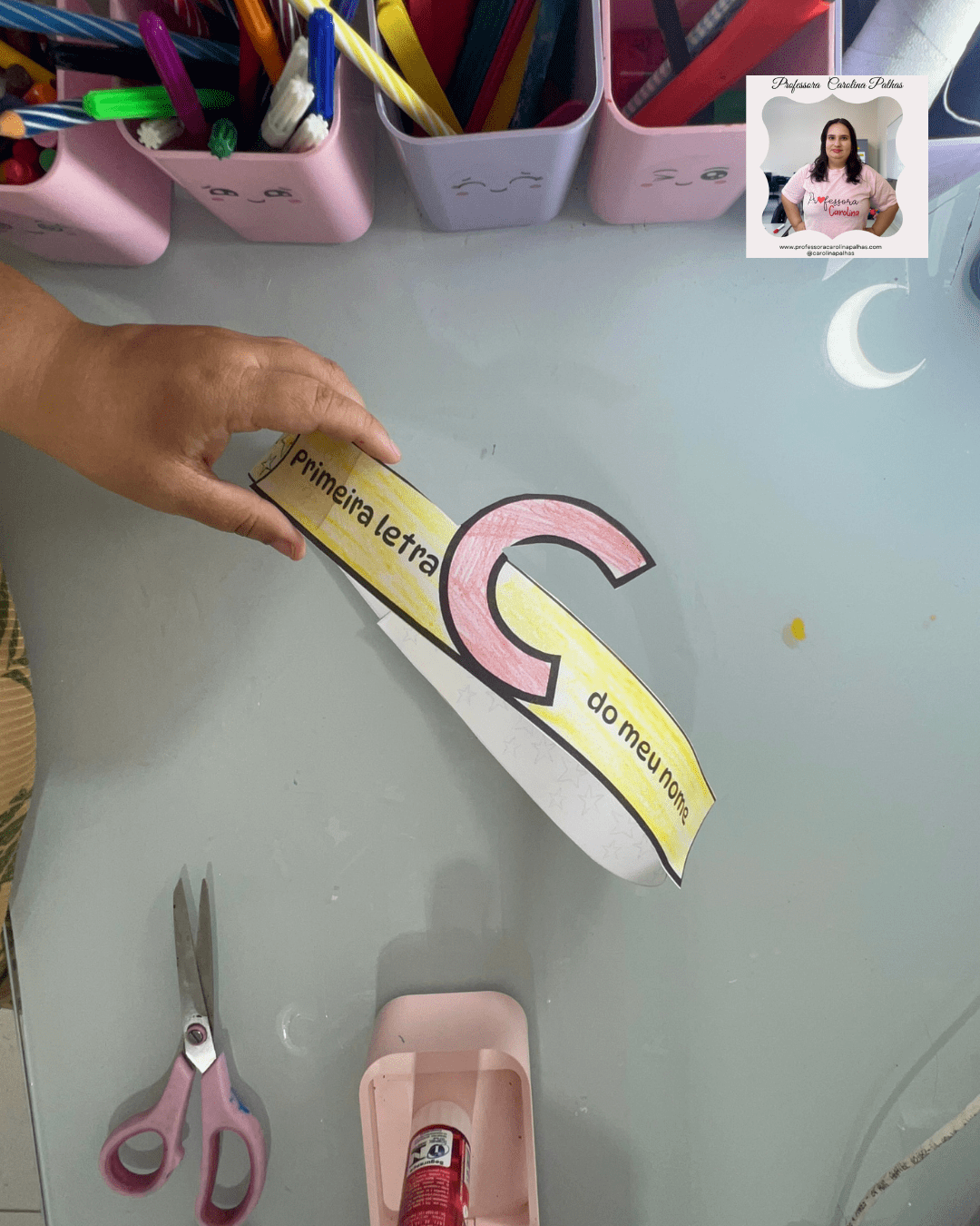 • Cada criança recebe uma coroa com a letra inicial do seu nome para decorar e usar.