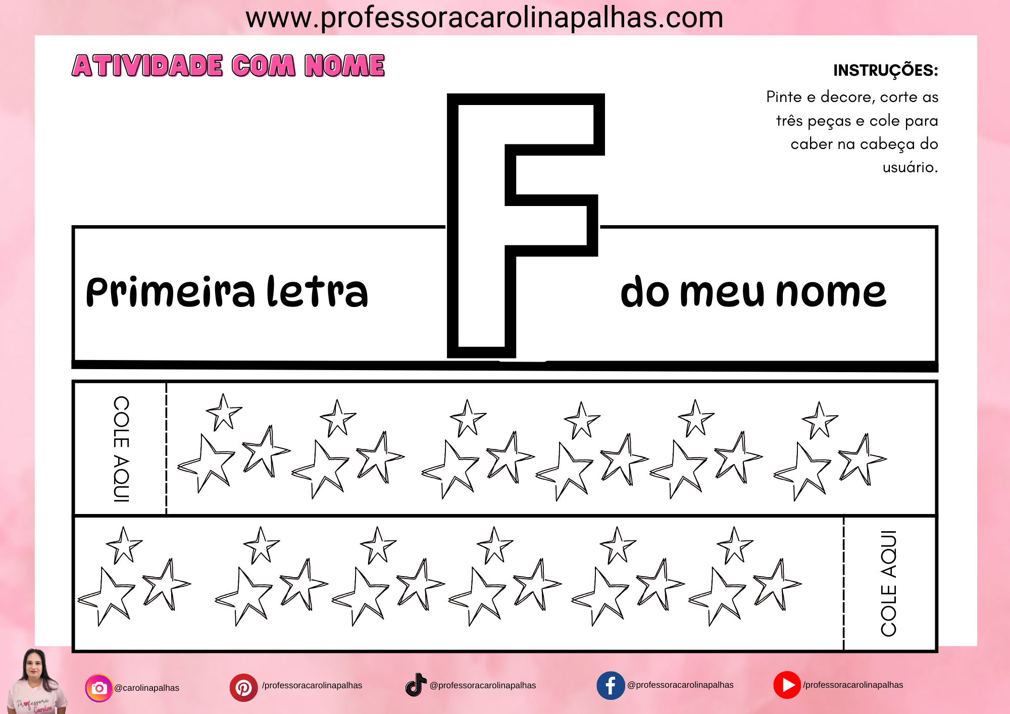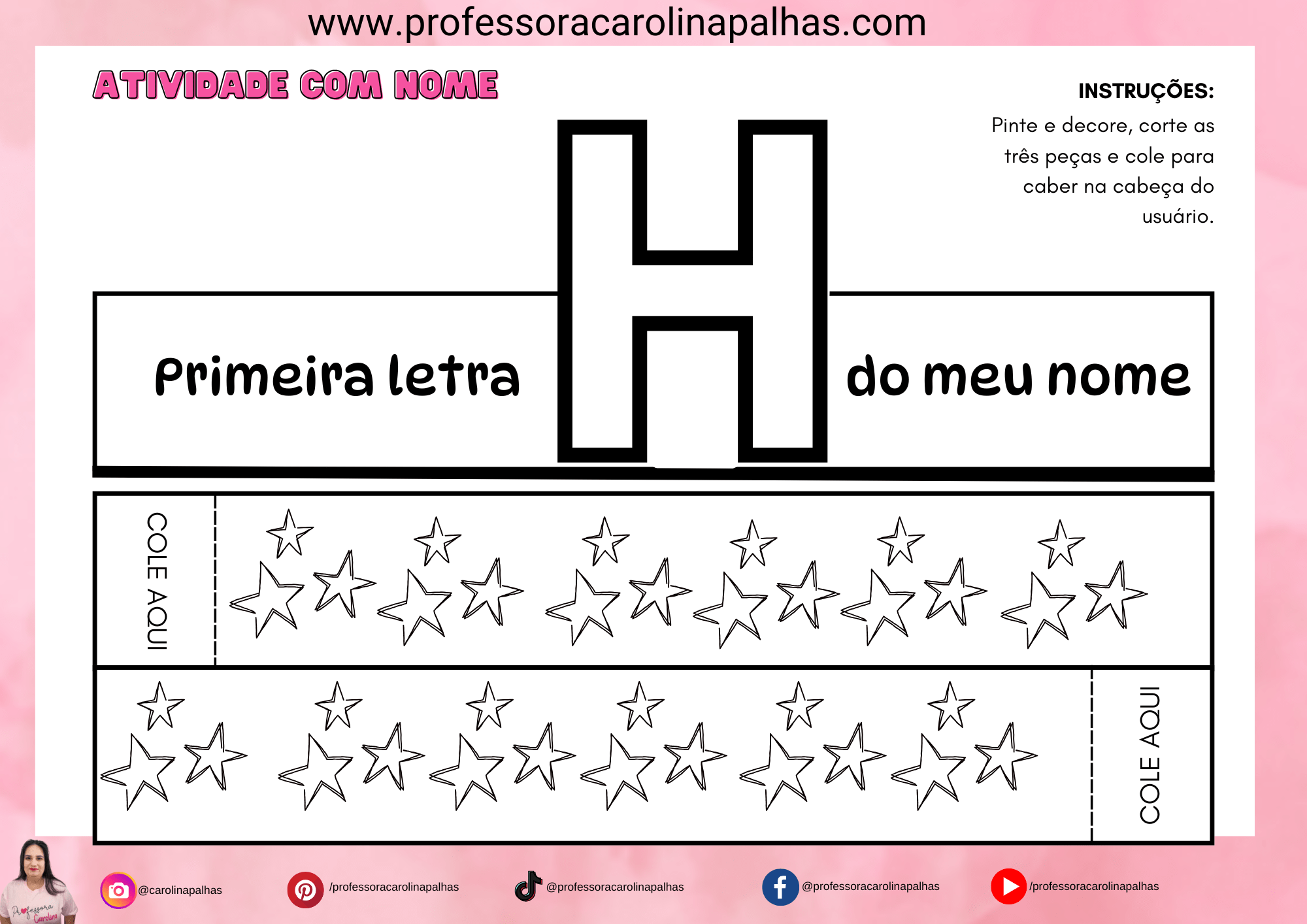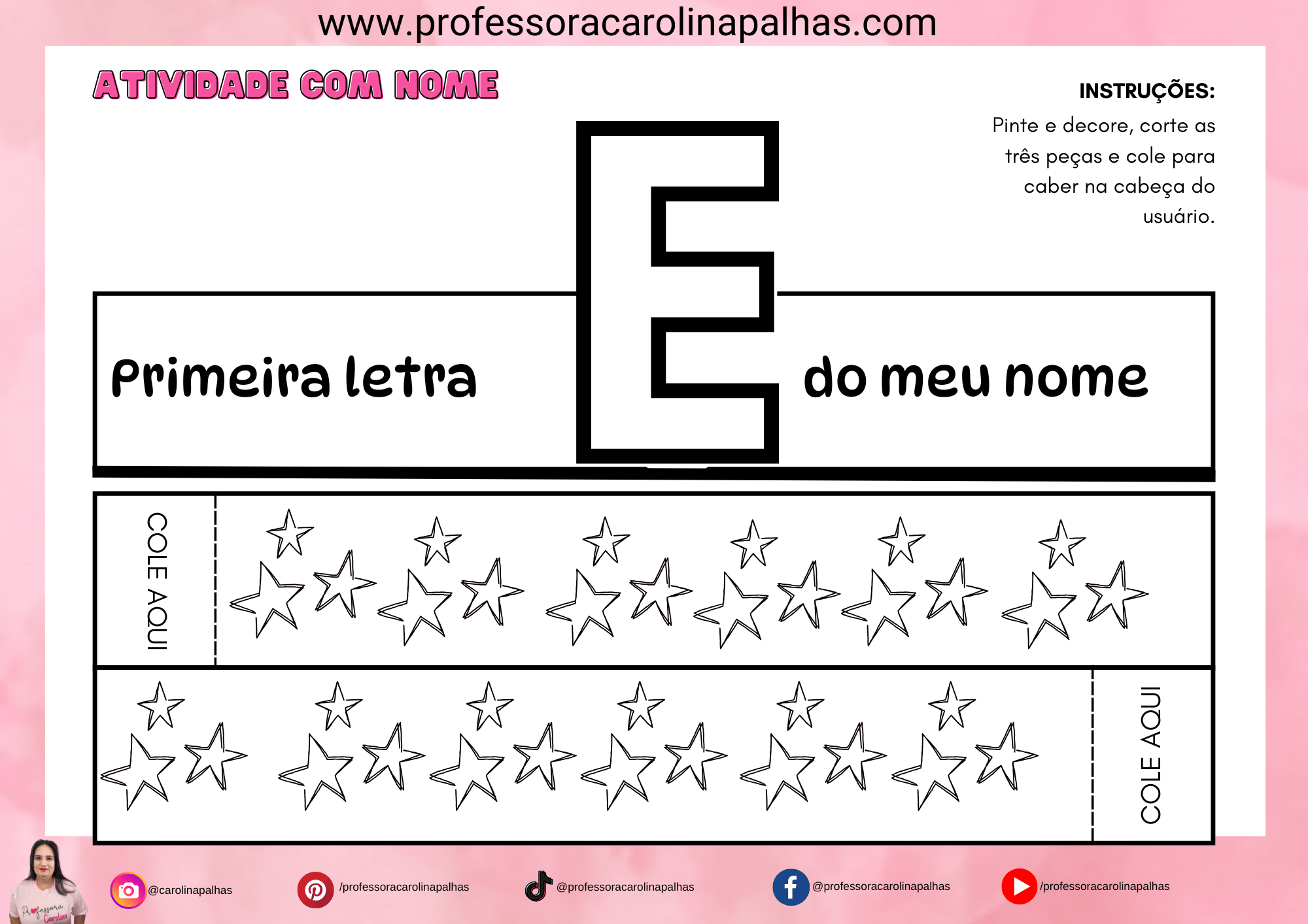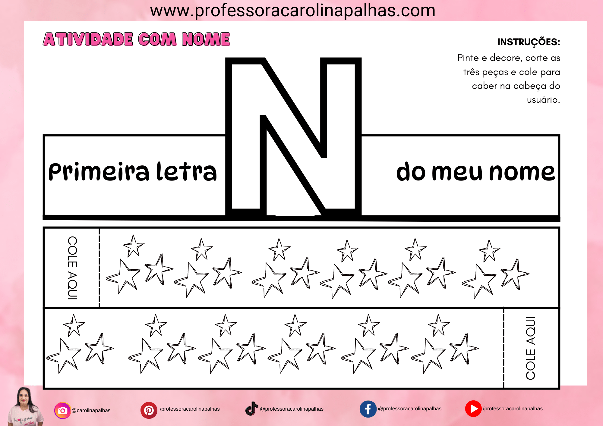 Palavras-chave: atividades com nome, educação infantil, maternal, pré-escola, aprendizado lúdico, identificação do nome, coordenação motora, BNCC, atividade infantil, reconhecimento de letras