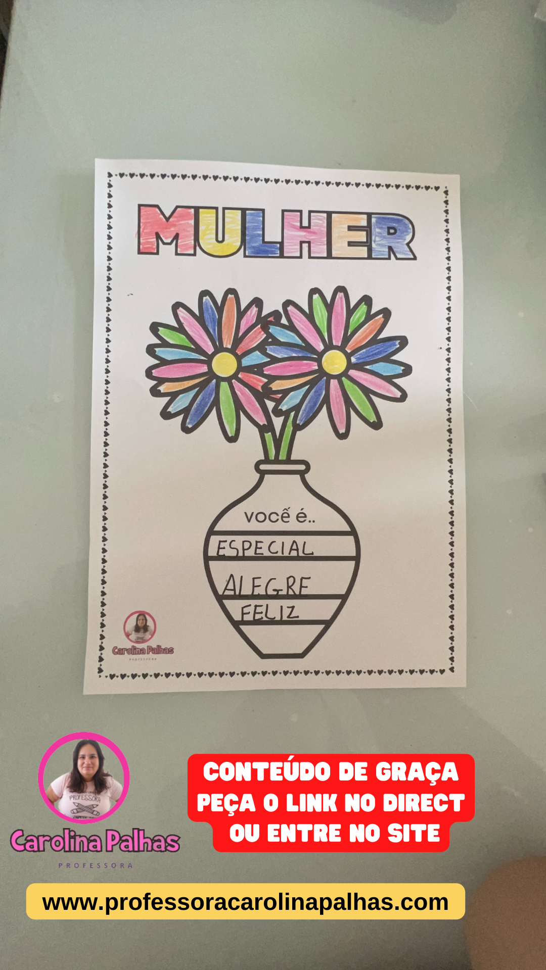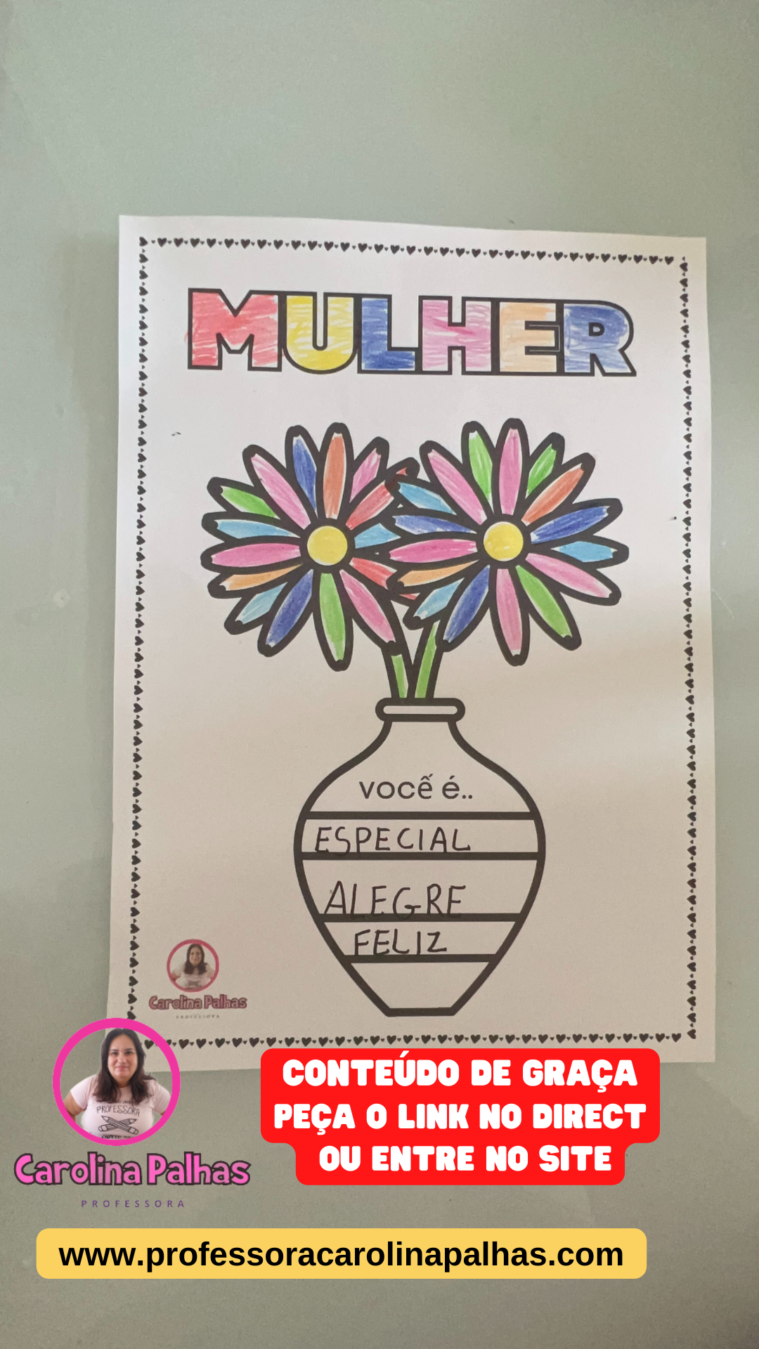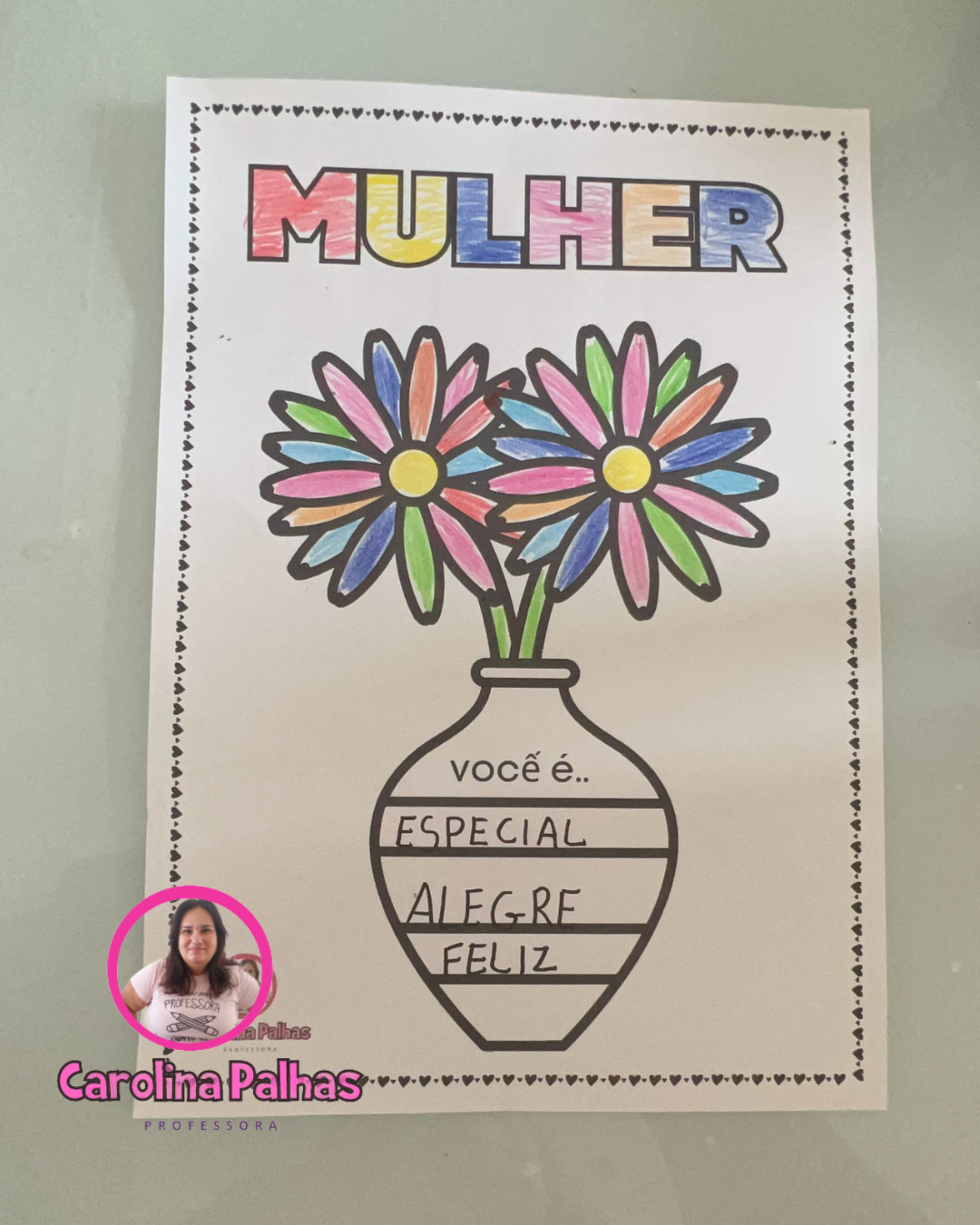 Essa atividade simples e encantadora ajuda as crianças a reconhecerem o valor das mulheres de maneira lúdica e afetiva. Além disso, reforça habilidades motoras e socioemocionais, criando memórias afetivas duradouras.