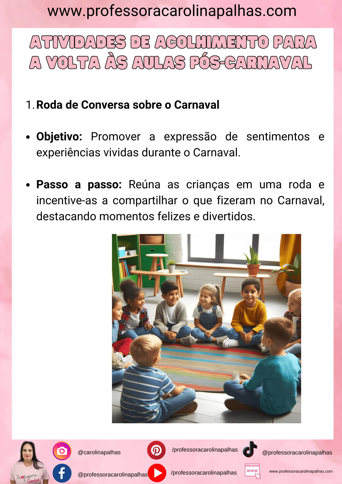 - Roda de Conversa sobre o Carnaval: Promove a expressão de sentimentos e experiências vividas durante o Carnaval.