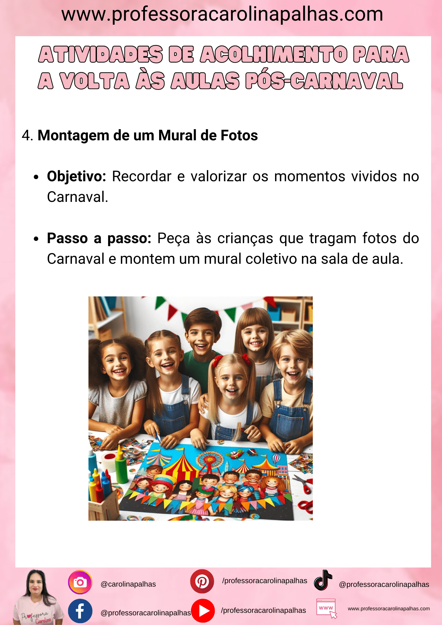 - Montagem de um Mural de Fotos: Recorda e valoriza os momentos vividos no Carnaval.