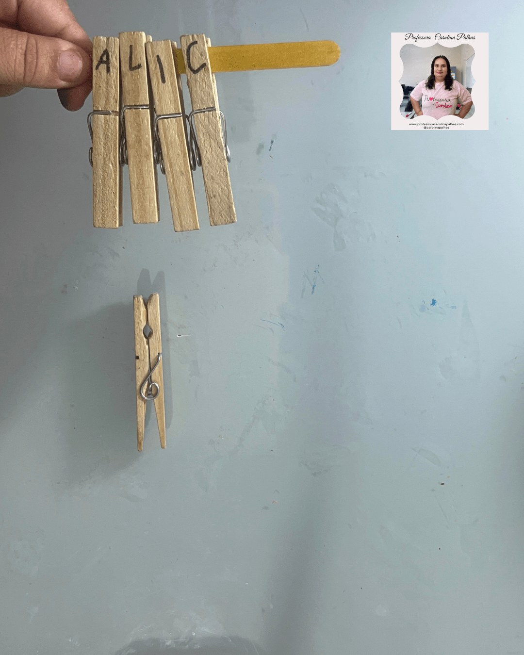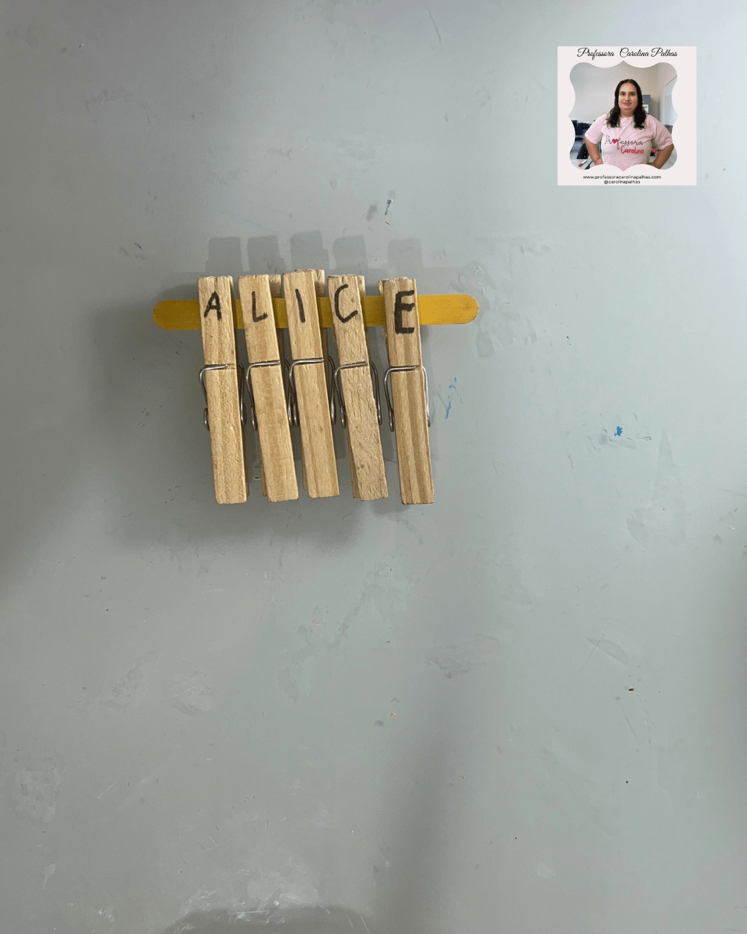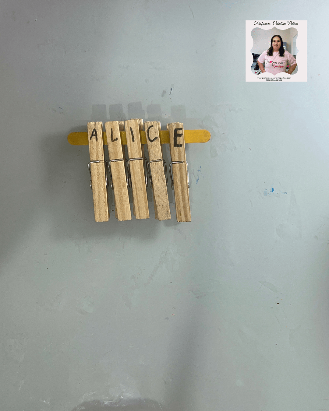 - 🖐️ Brincando com Prendedores: Escrever cada letra do nome nos prendedores e montar no palito de sorvete.
