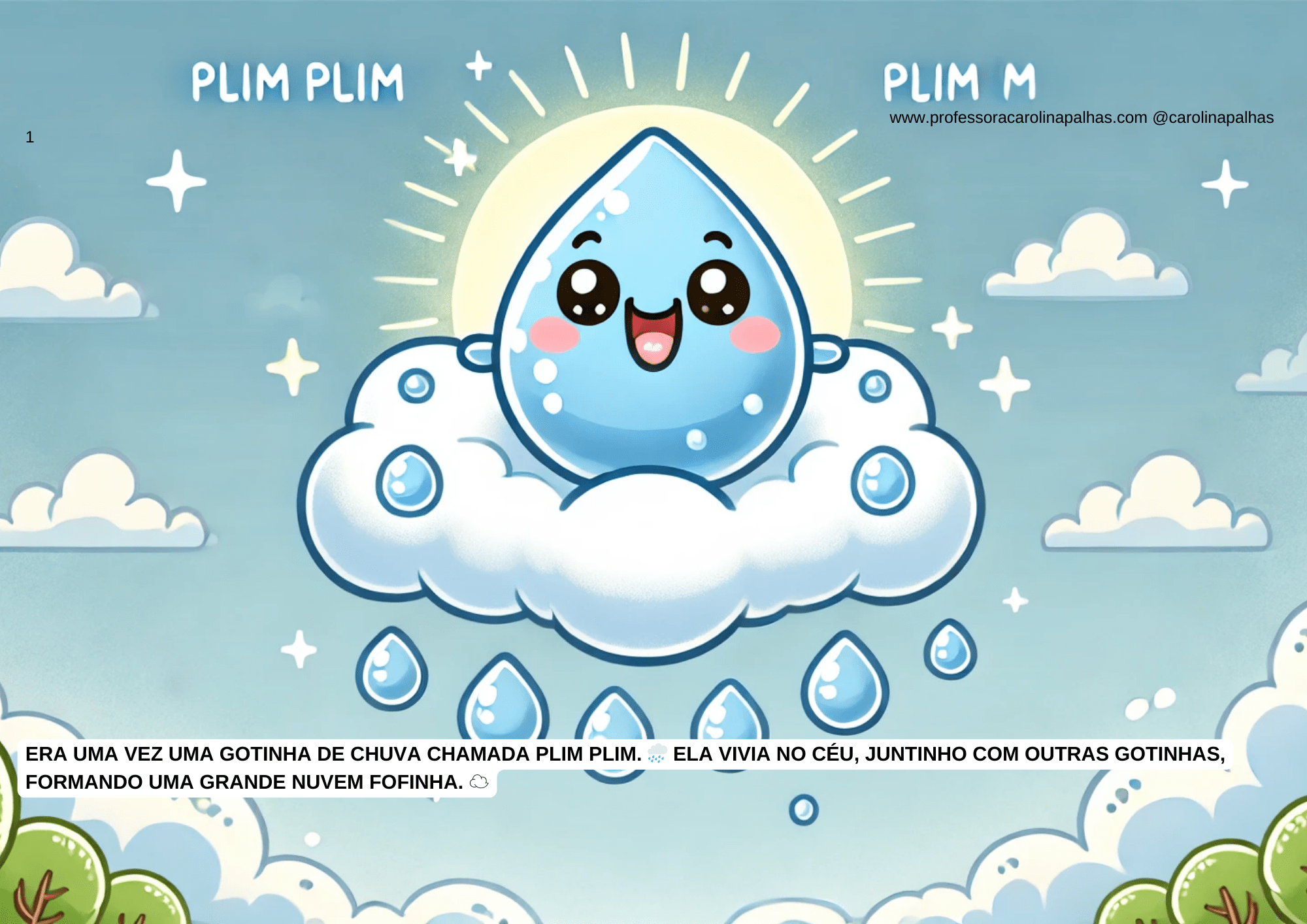A água está presente em nossas vidas de diversas formas, e ensinar sobre seu ciclo pode ser uma experiência divertida e enriquecedora para as crianças! 🌎💧 A história “Plim Plim e o Ciclo da Água” é uma forma lúdica de introduzir conceitos ambientais, ciências e a importância da água para a natureza.