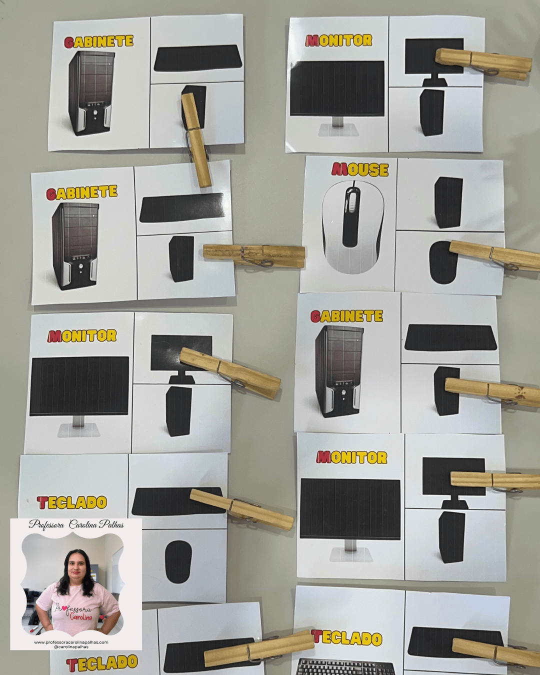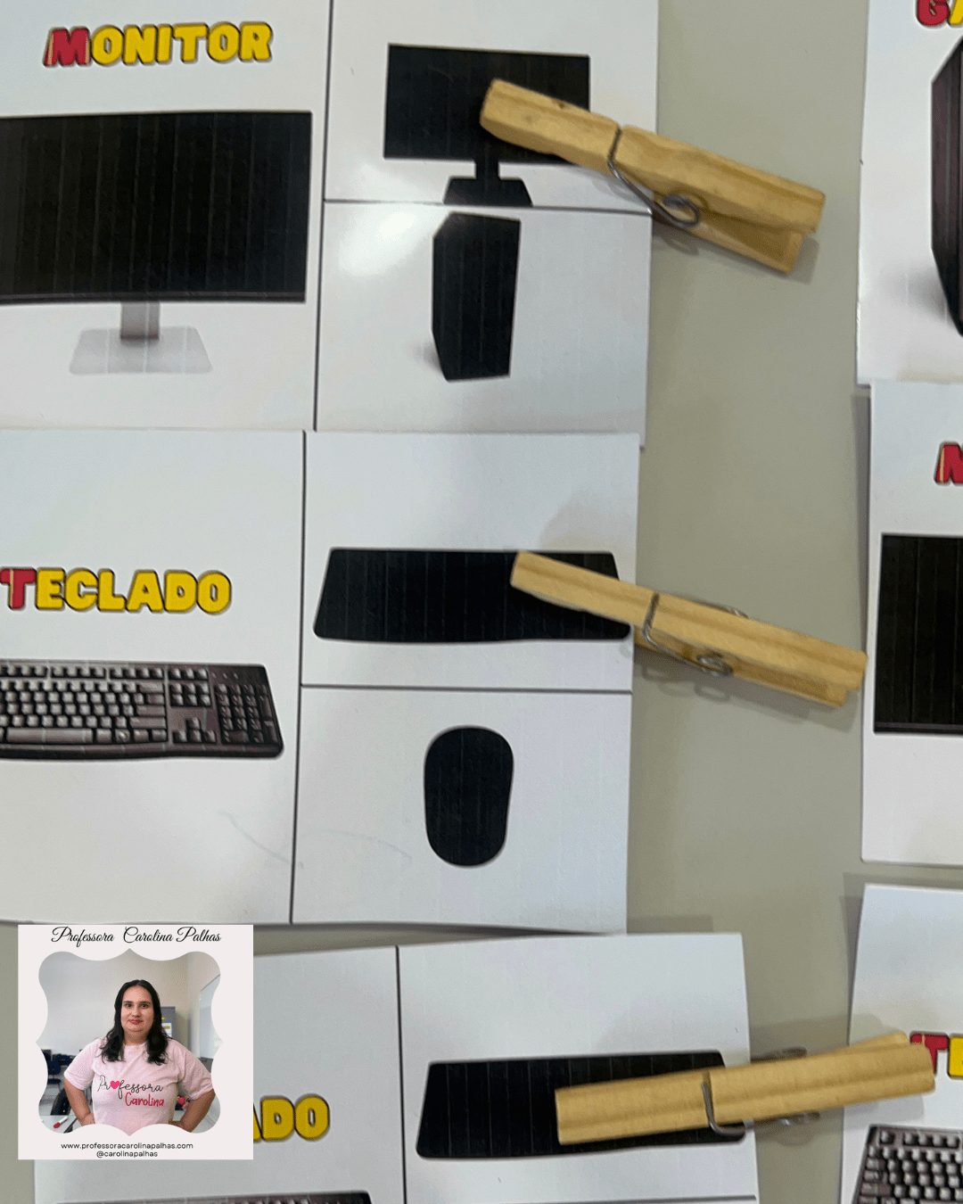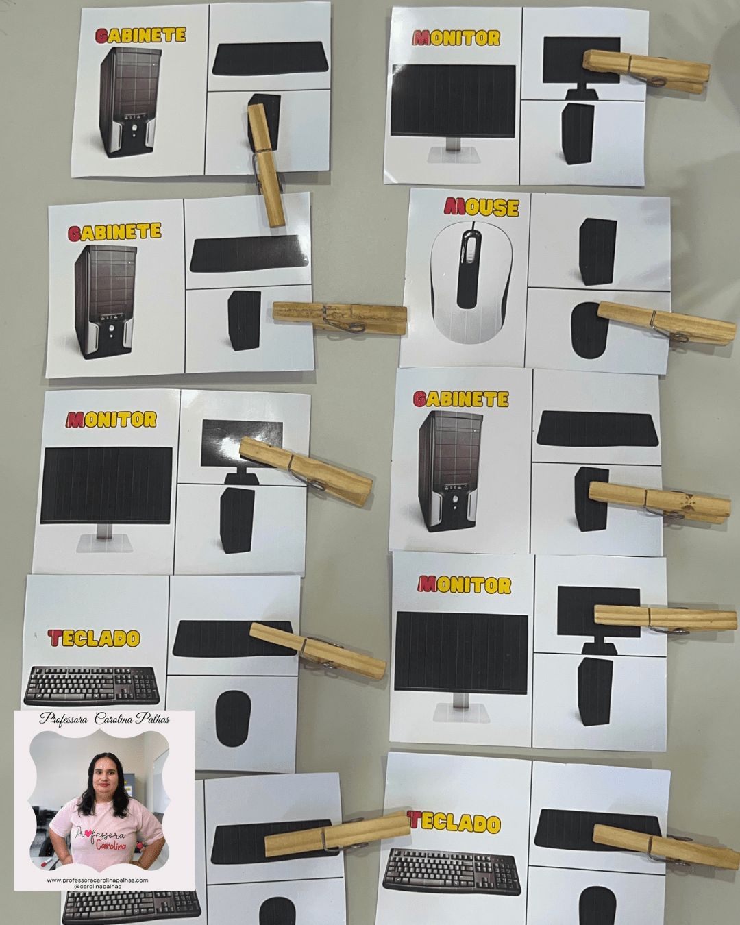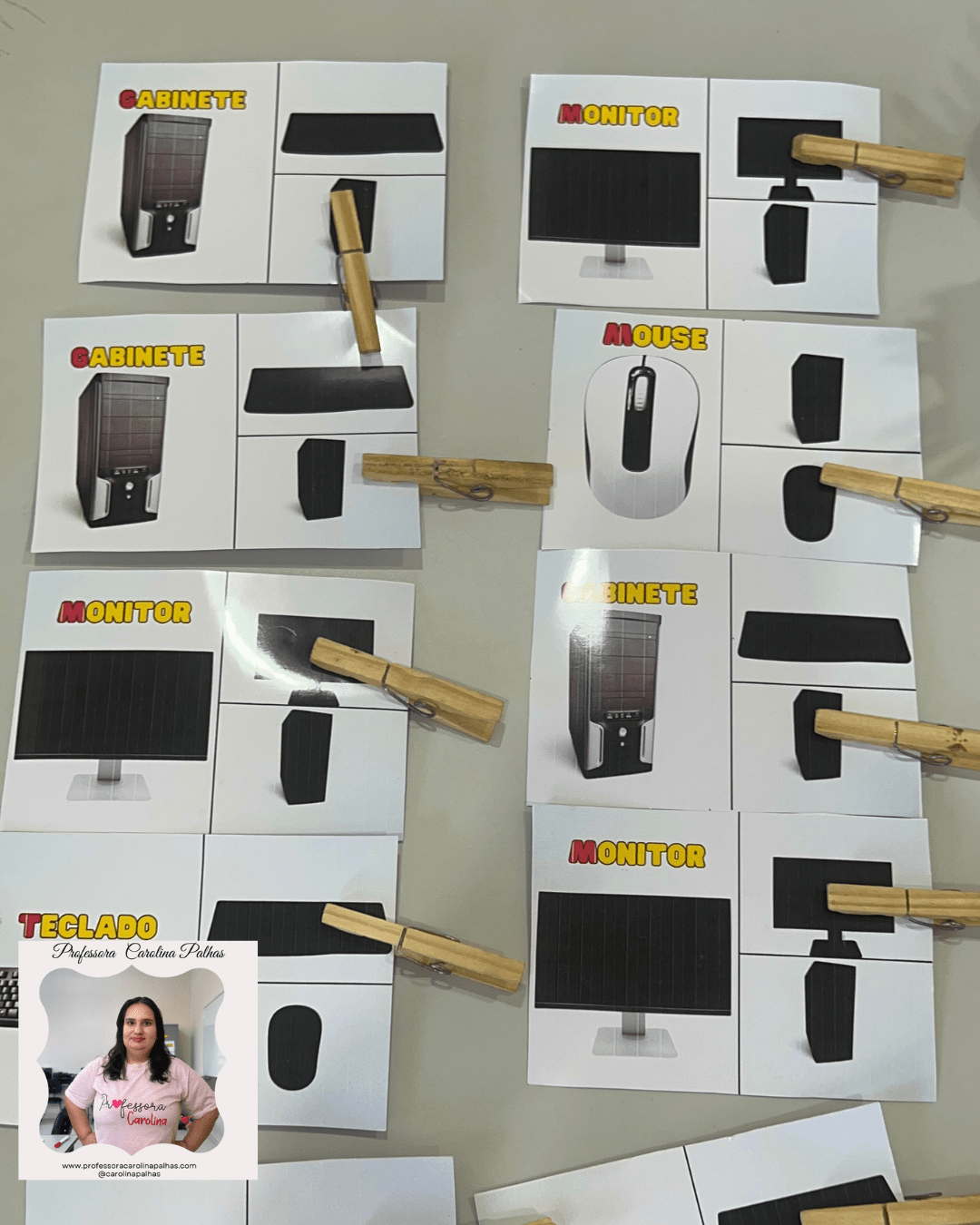 - Distribua as cartelas com imagens das partes do computador e suas respectivas sombras.