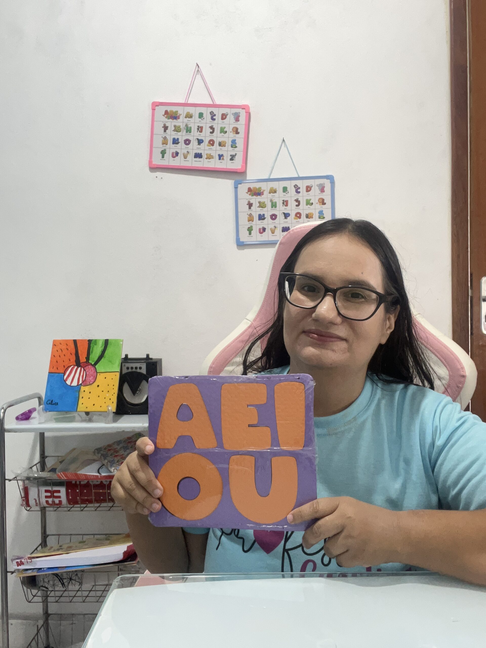 Integração com música: Cante músicas com vogais (como a “Música das Vogais”) e faça movimentos com as letras durante a música.