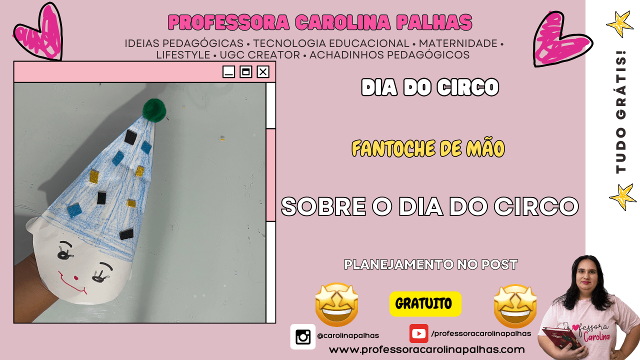 Palavras-chave: fantoche de palhaço, dia do circo, educação infantil, atividade lúdica, artesanato infantil, BNCC, habilidades socioemocionais, coordenação motora, planejamento pedagógico, ensino divertido, recurso pedagógico, atividades com palhaço, dia do circo na escola, fantoche de papel, ideias criativas para o circo, circo na educação infantil, sequência didática circo, plano de aula circo, semana do circo, decoração dia do circo, atividades pedagógicas, fantasia de palhaço, lembrancinhas para o dia do circo