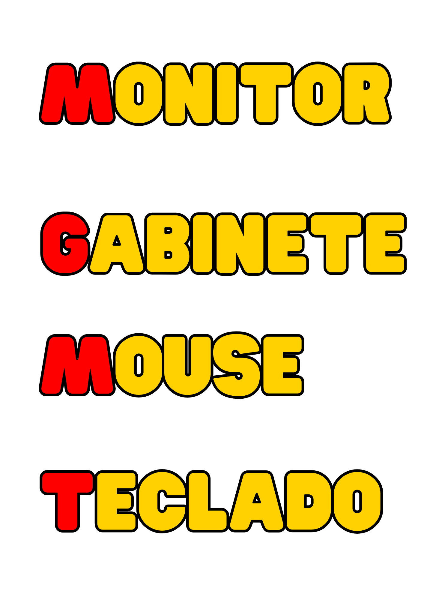- Etiquetas com os nomes: MONITOR, TECLADO, MOUSE, GABINETE