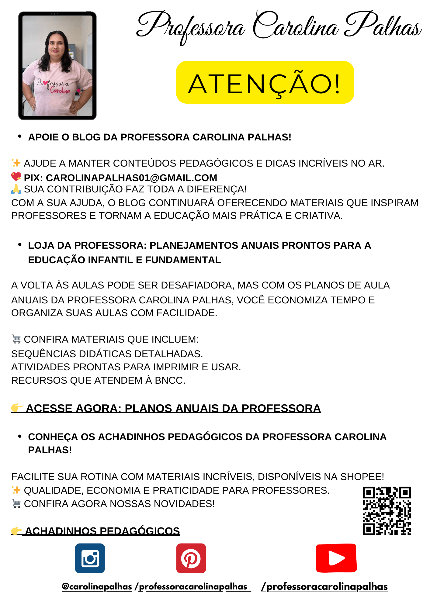 APOIE O BLOG DA PROFESSORA CAROLINA PALHAS!