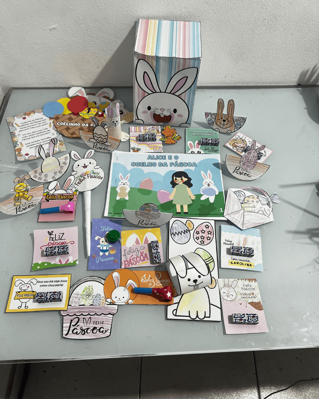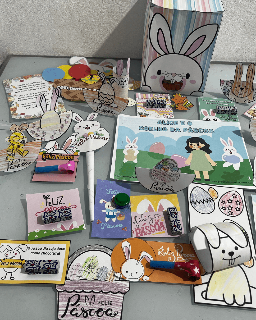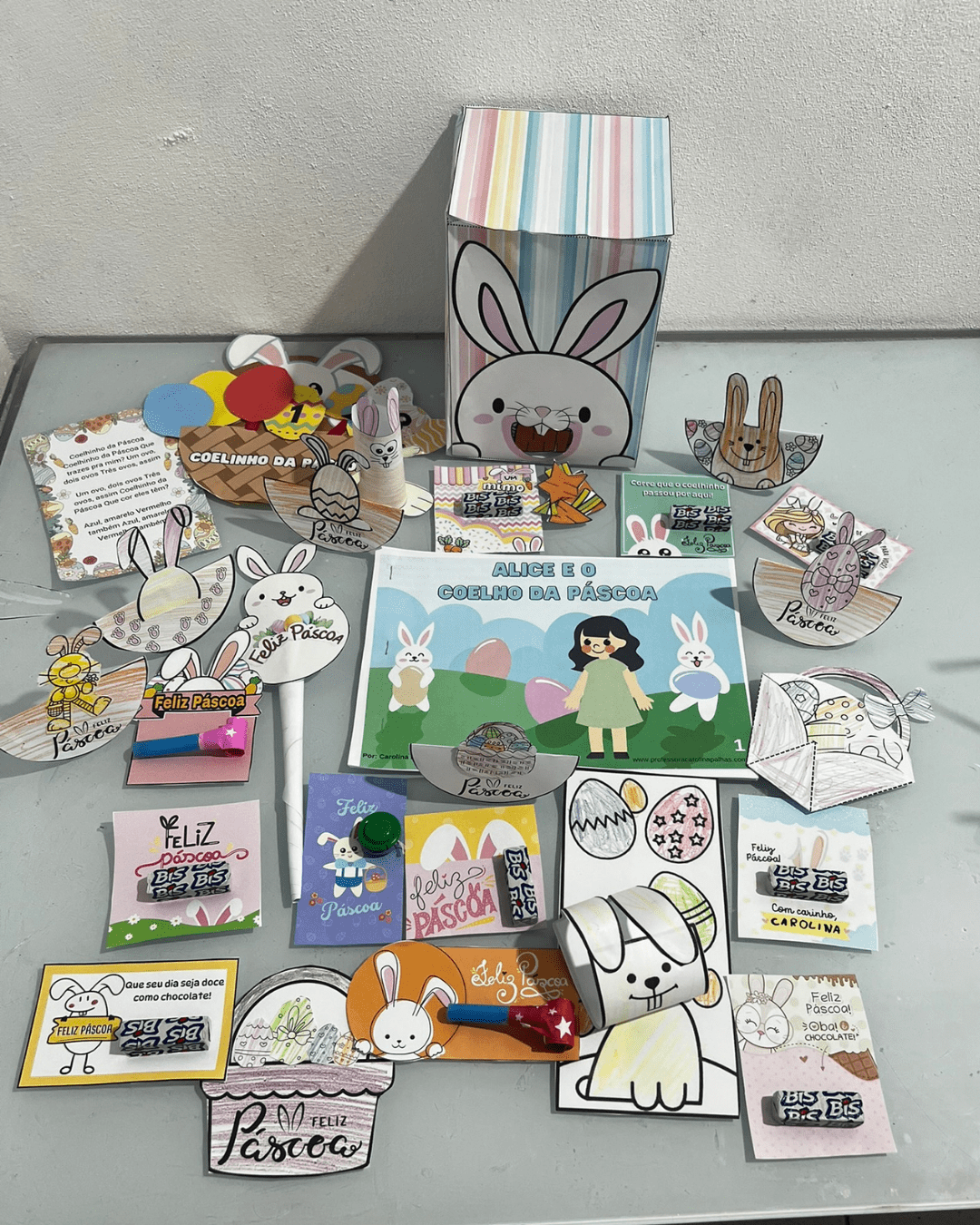 Pode ser “O Coelhinho que Esconde os Ovos”, “Amizade na Páscoa”, “A Páscoa das Formas Geométricas”…