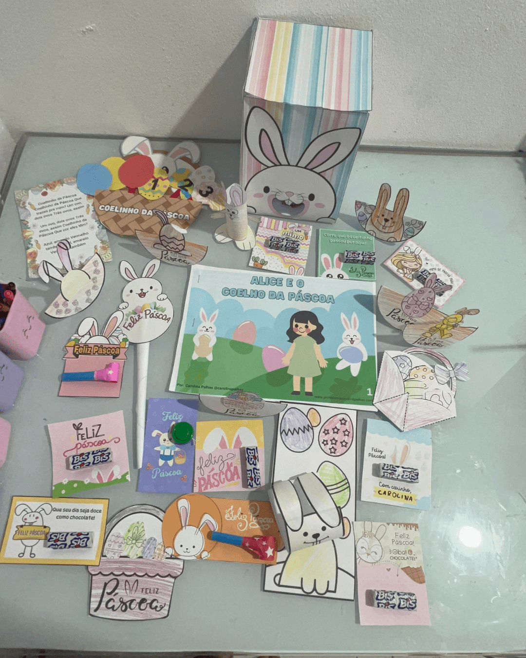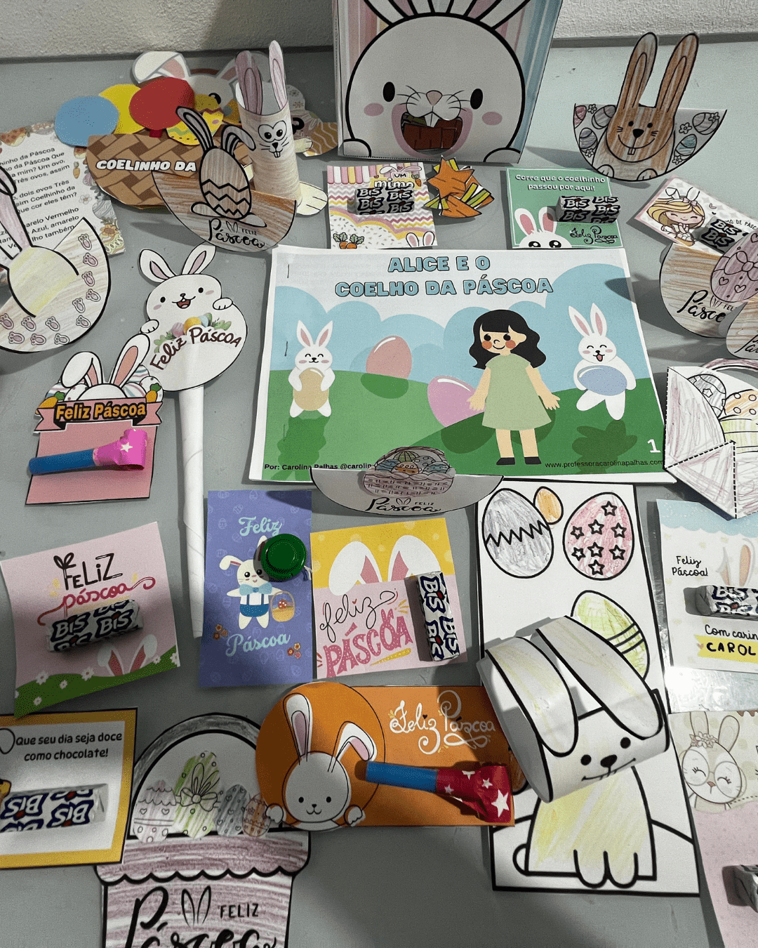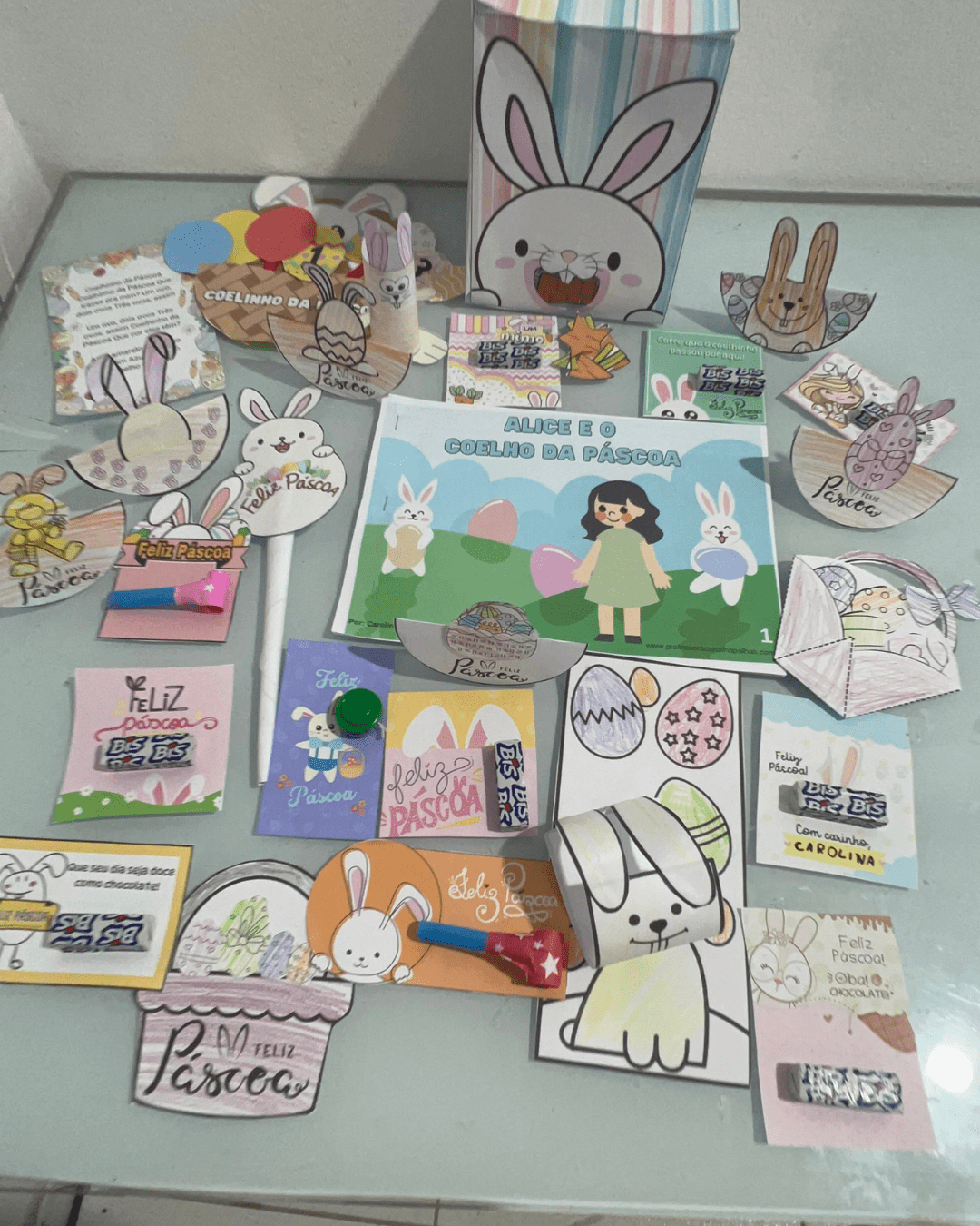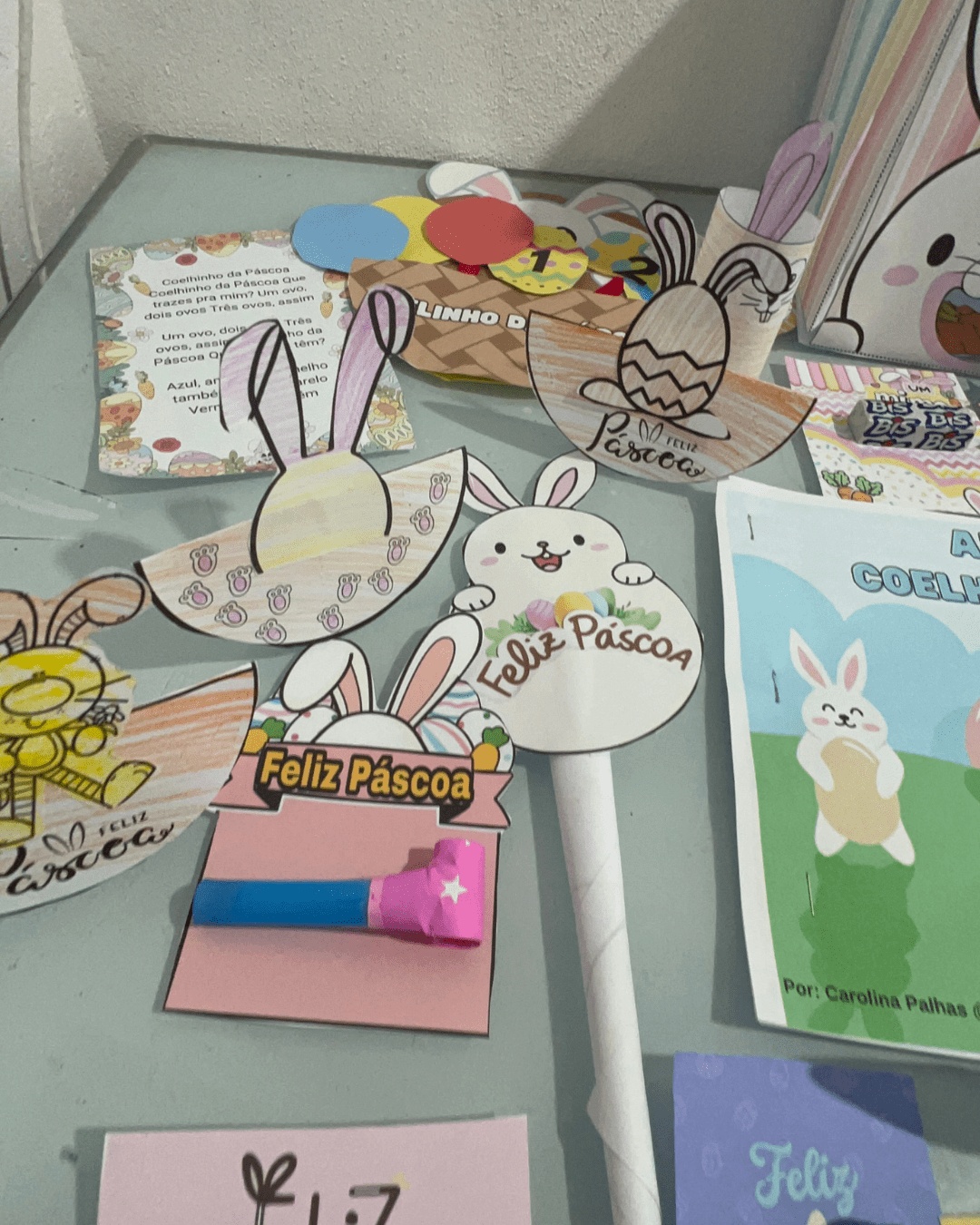Pode ser “O Coelhinho que Esconde os Ovos”, “Amizade na Páscoa”, “A Páscoa das Formas Geométricas”…