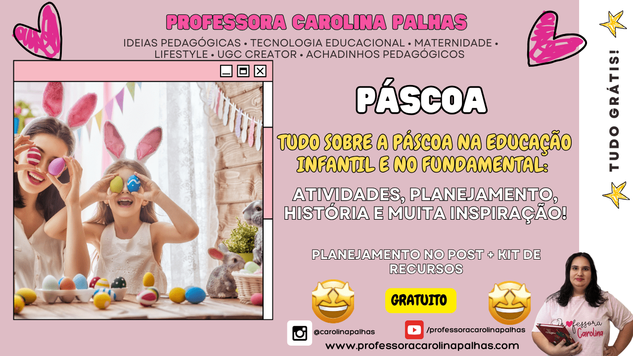 palavras-chave: páscoa, educação infantil, ensino fundamental, atividades lúdicas, BNCC, coelhinho da páscoa, música infantil, planejamento de páscoa, história infantil, lembrancinhas de páscoa, coordenação motora, kit páscoa educativo, páscoa na escola, simbolismo da páscoa, valores da páscoa, projeto páscoa, páscoa divertida