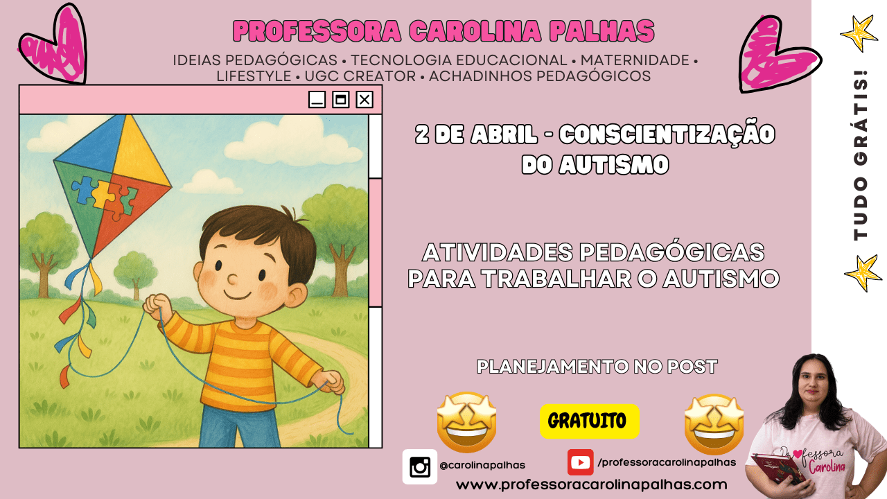 Palavras-chave: autismo, educação infantil, inclusão, respeito às diferenças, atividades lúdicas, desenvolvimento infantil, conscientização sobre o autismo, dia do autismo, BNCC, sala de aula inclusiva, atividades pedagógicas, ensino infantil, atividades sobre o autismo, recursos pedagógicos, ensino inclusivo, habilidades socioemocionais, educação especial, diversidade, empatia