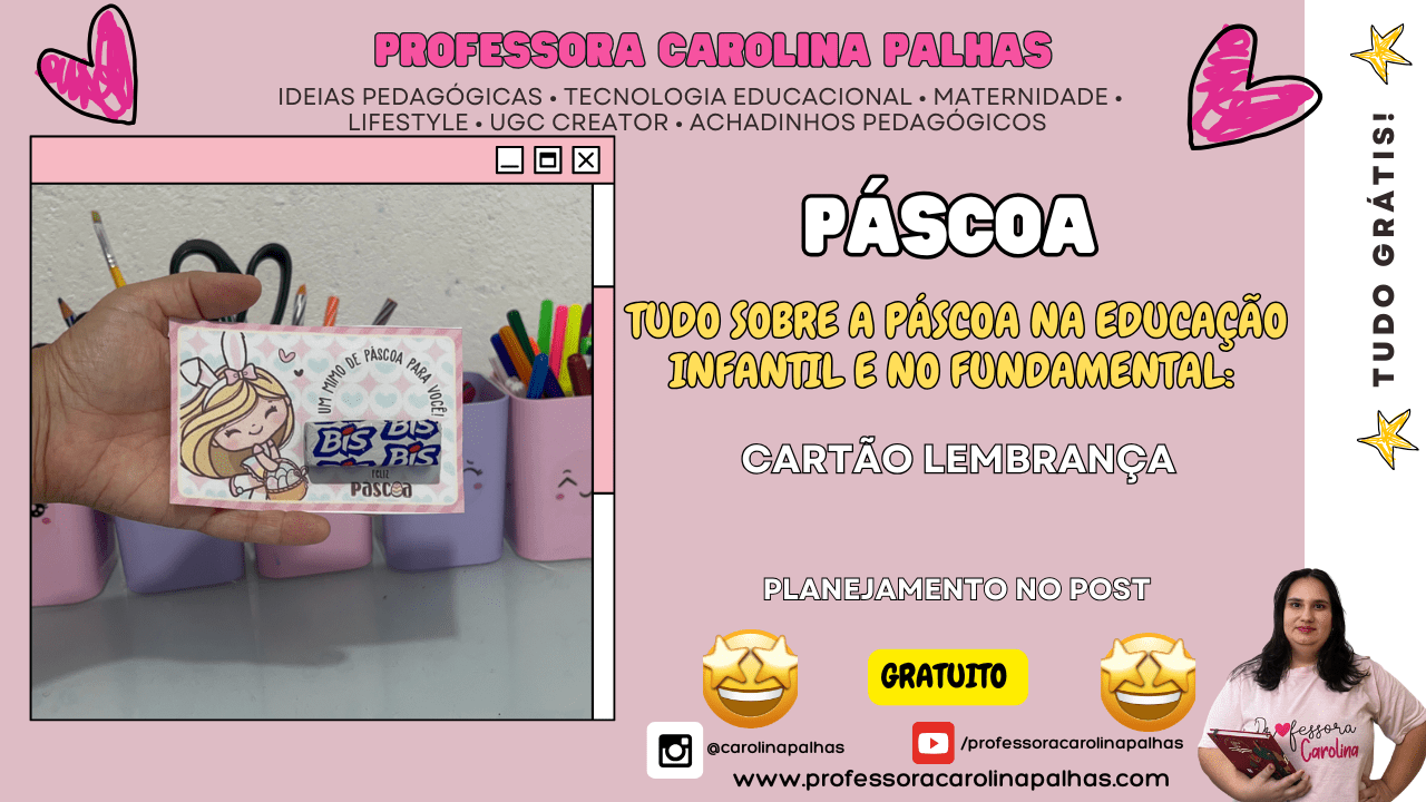 🎁 Quer mais cartões de Páscoa para imprimir? Acesse aqui a coleção completa com versões coloridas e em preto e branco → www.professoracarolinapalhas.com