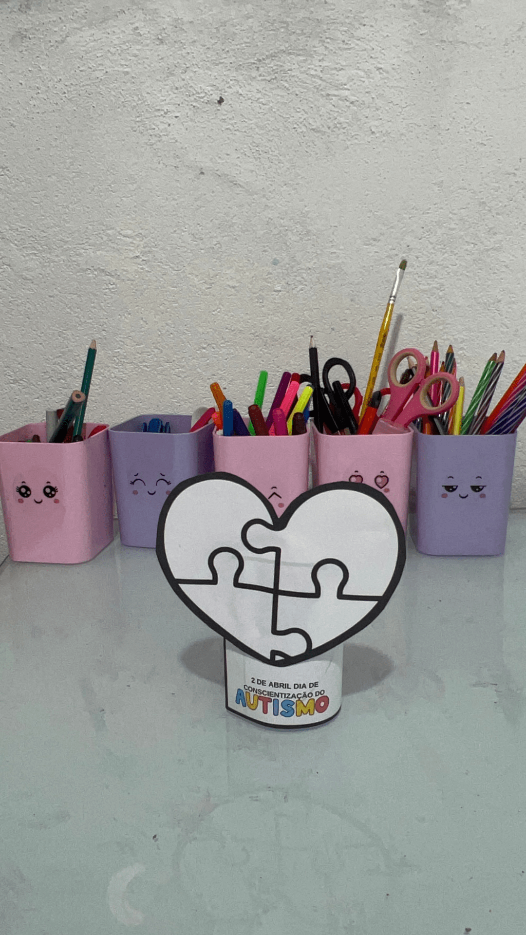 Apresentação do símbolo do autismo (coração com peças);
