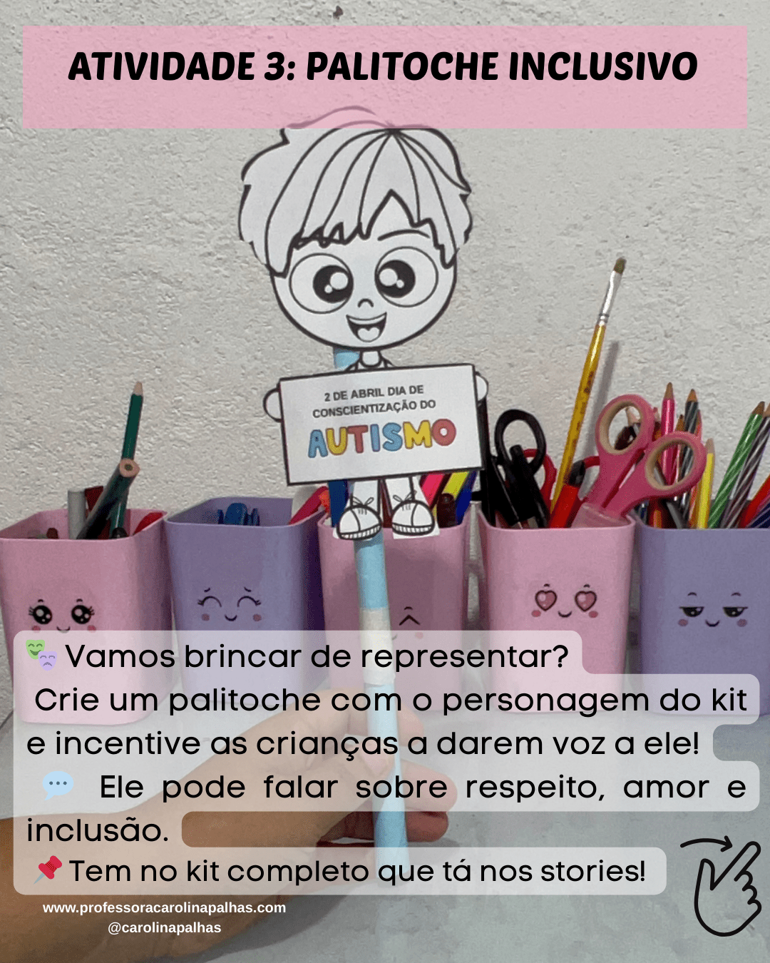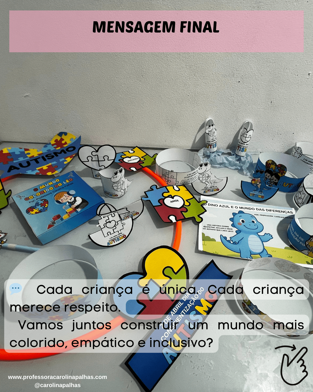 Todo esse planejamento e as atividades sugeridas estão prontinhas no meu Kit do Dia Mundial da Conscientização do Autismo, com arquivos para imprimir, montar e usar em sala de aula. ✂️📎