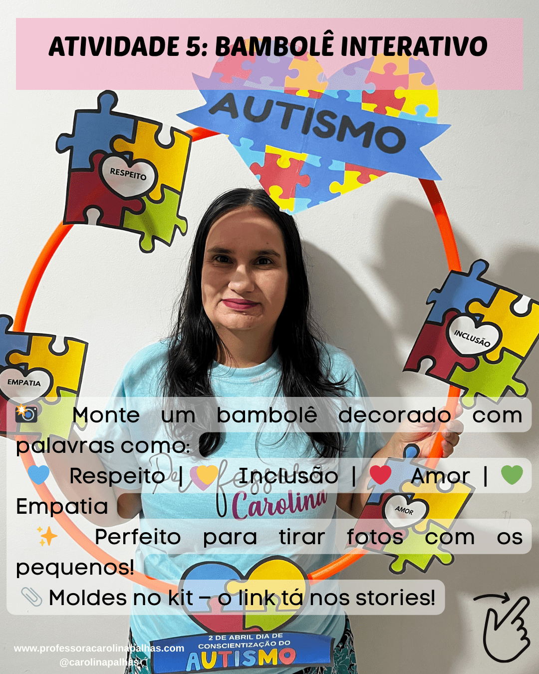 Sessão de fotos com o bambolê da inclusão (atividade do kit)