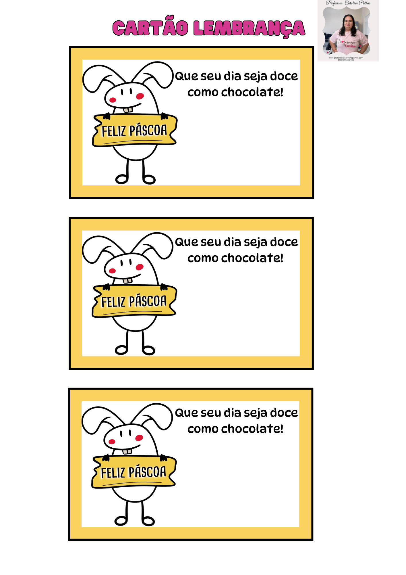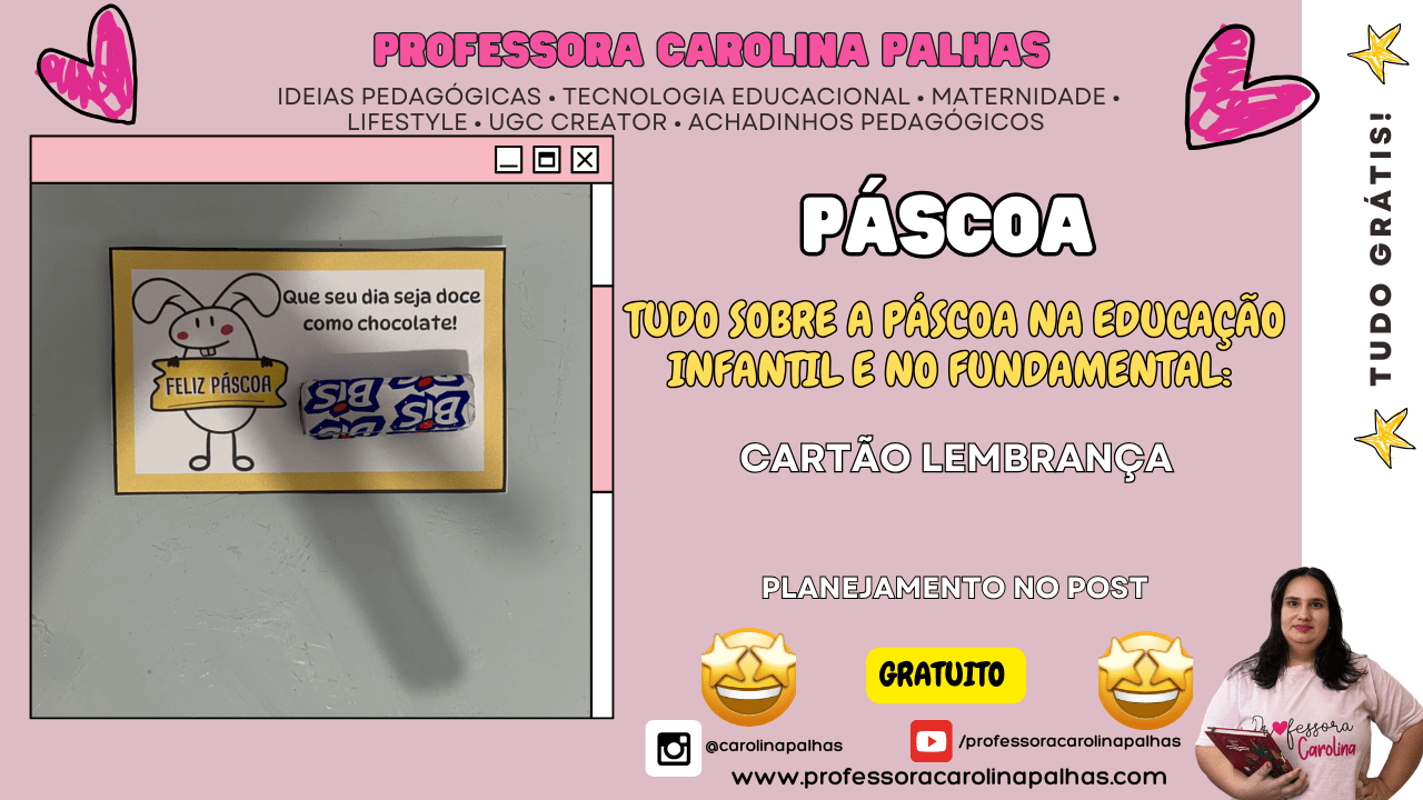 🎁 Quer mais cartões de Páscoa para imprimir? Acesse aqui a coleção completa com versões coloridas e em preto e branco → www.professoracarolinapalhas.com