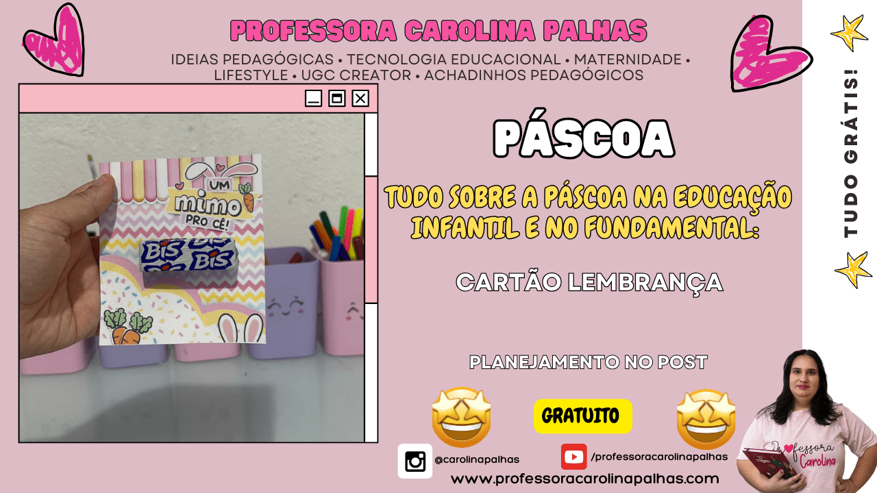 🎁 Quer mais cartões de Páscoa para imprimir? Acesse aqui a coleção completa com versões coloridas e em preto e branco → www.professoracarolinapalhas.com