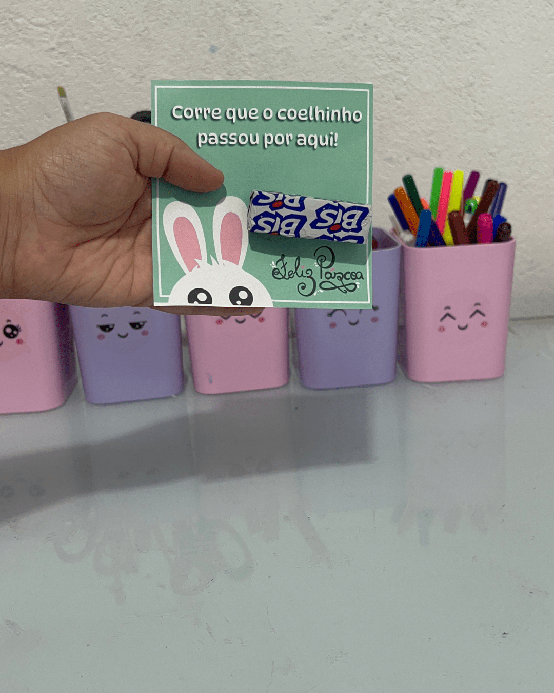 Sugerir que as crianças escrevam o nome e uma frase simples como “Feliz Páscoa!” ou “Com carinho, [nome]”.