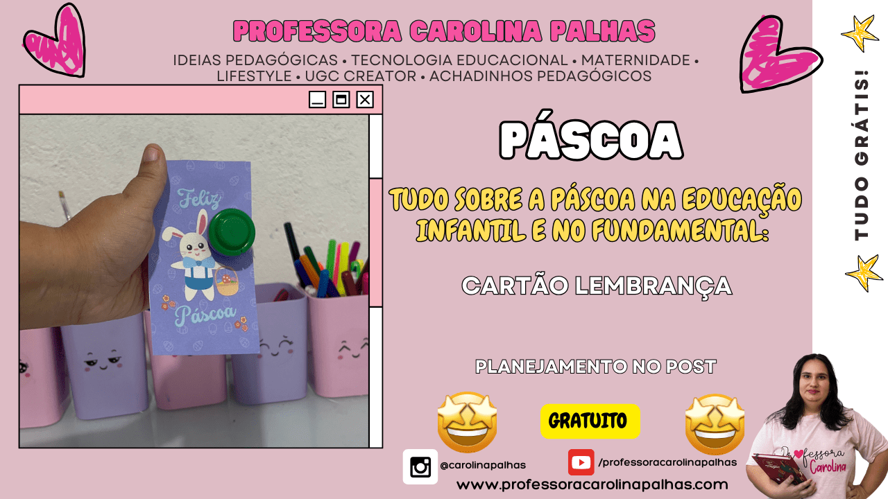 🎁 Quer mais cartões de Páscoa para imprimir? Acesse aqui a coleção completa com versões coloridas e em preto e branco → www.professoracarolinapalhas.com